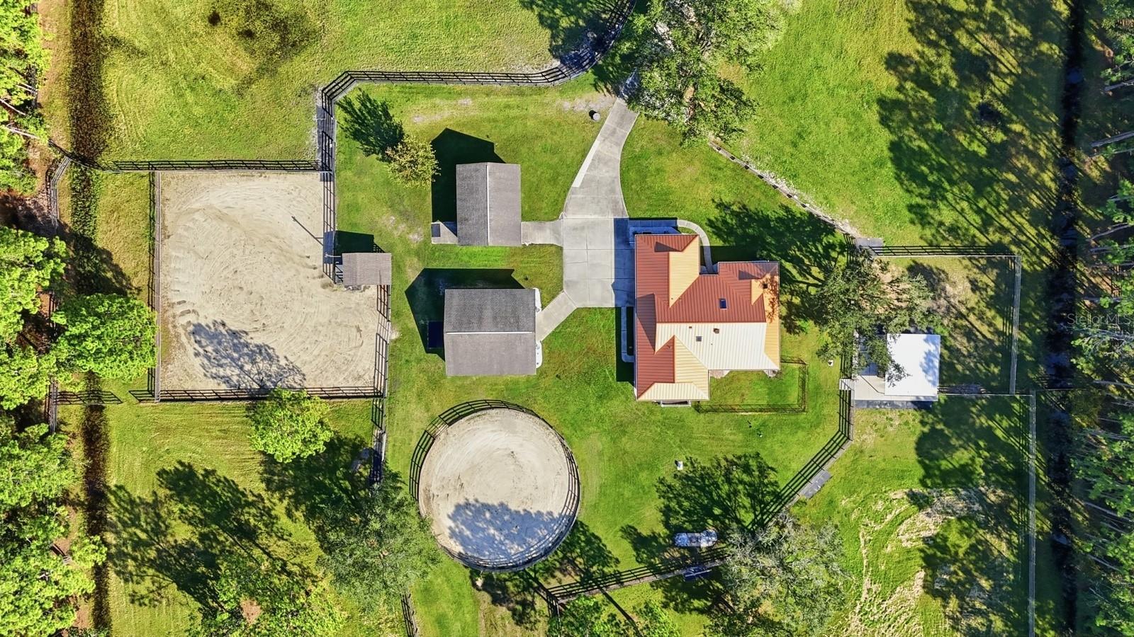 EQUESTRIAN DREAM HOME & truly TURN-KEY. On a private road in the highly sought out Spring Forest neighborhood, this 4 bedroom 2 bathroom with an oversized 2 car garage on 10 acres is everything you’ve been looking for. Upon walking in, you’ll immediately notice the natural lighting this home brings with BRAND NEW Anderson Windows held under a lifetime warranty with the home. A split floor plan allows for maximized space and comfortable living. The living room of the home offers an exceptional view of the barn, corral and arena - however, make no mistake - looking out of every window within the home, you're guaranteed an incredible view! The house is equipped with, fresh paint (interior and exterior in 2022), whirlpool gold series refrigerator, double oven and dishwasher. New light fixtures, gutters, porch screens, new laundry room cabinetry for storage and custom Mirasol Sheerview window shades. The screened in porch out back also includes a motorized remote porch shade which is warrantied as well. The 4th bedroom was converted into a california closet - keep it this way or easily convert it back to a 4th bedroom. New hand blown lights can be found in the foyer and kitchen sitting area. The home is ready for a whole home generator with an automatic transfer switch that was installed in 2022. A brand new RPS Copper GuardianRoof was installed in 2025 with a 50 year warranty will give you peace of mind for years to come. SkyFlex skylights, and a SkyFlex solar attic fan. The 50 year roof warranty includes yearly inspections AND post-hurricane inspections. The AC was installed in 2017 and has been serviced every 6 months and there is a termite bond maintained on the home. Stepping into the center aisle of your block built barn, you have 4 stalls equipped with floor mats, stall fans, windows out of the back of the stalls, and lighting. The barn, indoor wash rack and outdoor wash rack also have cold and hot water! A large tack room will allow for plenty of barn storage space! The barn and shed were also freshly painted in 2022. In 2024 the current homeowners brought in 36 loads of sand and dirt to build a riding arena and an 80' diameter round pen/corral, raised concrete wash rack which have electrical, fans and lighting. The property is surrounded by 4 rail fencing with multiple pastures sectioned off. On the opposite side of the property there are also two outdoor stalls on concrete also with water, electric, and fans. In the back of the property is a marksman range complete with a covered and screened in area set on pavers along with a fan to keep you out of the sun, providing comfort while you target practice. The only thing this property is missing is you - the rest has been done!