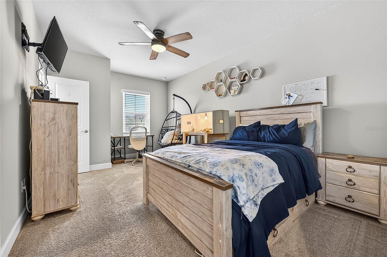 Welcome to this exceptional custom-built ICI Santa Maria model, perfectly positioned on a quiet cul-de-sac lot in the sought-after Woodhaven community. Offering over 3,030 square feet of thoughtfully designed living space, this 4-bedroom, 3.5-bath home with a dedicated office and expansive upstairs loft blends luxury, functionality, and everyday comfort. From the moment you enter, soaring ceilings and abundant natural light set the tone for the home's open and inviting feel. Just off the entry, a private office or flex space and convenient powder room provide the ideal work-from-home setup, while the opposite side features a dedicated laundry room, under-stair storage, and access to the tandem garage with incredible storage capacity. The gourmet kitchen is a true showstopper, designed for both entertaining and everyday living with quartz countertops, a stunning designer backsplash, crown molding atop the cabinetry, a massive center island, butler's pantry, high-end appliances, wine fridge, electric cooktop, and built-in wall oven and microwave. The kitchen flows effortlessly into the great room, offering plenty of space for an oversized dining table and generous living area. Large sliding glass doors open to the covered outdoor entertaining space complete with an outdoor kitchen and ample room to add a pool, creating the perfect indoor-outdoor lifestyle. The spacious primary suite is conveniently located downstairs and features a luxurious ensuite with dual vanities, a water closet, beautifully designed walk-in shower, and an oversized walk-in closet. Upstairs, a massive loft offers endless flexibility for a media room, hobby space, or additional workspace, while two secondary bedrooms with walk-in closets share a Jack-and-Jill bath. A fourth bedroom with a deep built-in closet and an additional full bath off the loft complete the upper level. Woodhaven is a welcoming, family-oriented community surrounded by top-rated schools and enhanced by amenities including scenic bike trails, a community pool, playground, and clubhouse, offering a lifestyle that balances modern convenience with timeless charm. This home truly checks every box for space, design, and location.