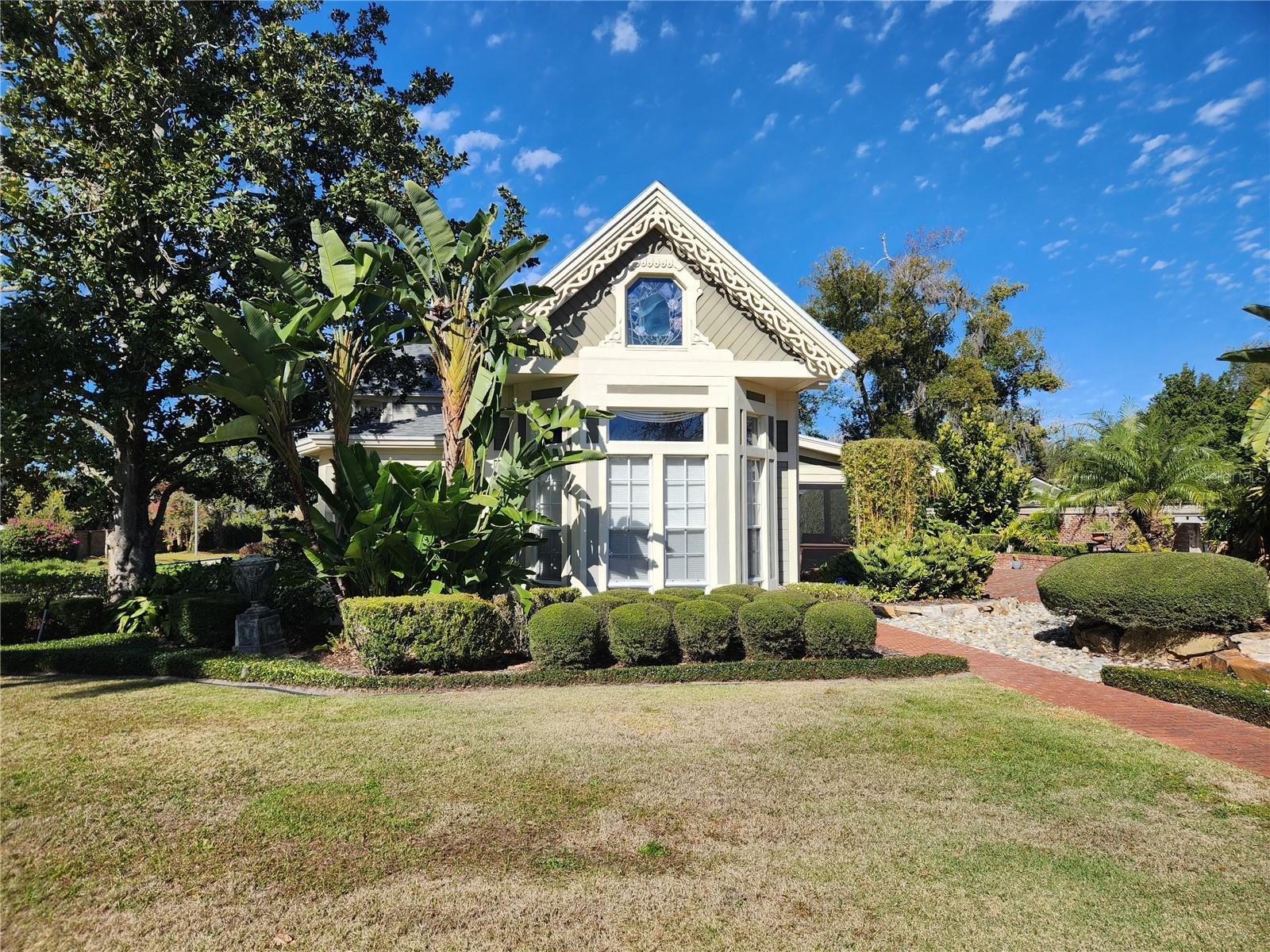 Maitland Architectural Gem - History Meets Modern Luxury. Step into over a century of charm in this extraordinary Victorian-inspired home, originally built in 1901, which was updated with Hardi-plank concrete siding. The great room and end suite expansion was completed in 2000 and has 3,474 Sq ft of living space. Nestled on Maitland’s Historical Trail (#31), this distinguished home has been featured in leading design and lifestyle magazines and blends historic character with thoughtful enhancements, including stained-glass windows, beamed cathedral ceilings, and sweeping wood floors throughout. 2025 new installation of wood floors in the Library, Bonus room, Great-room, upstairs hall, and main suite. The spacious great room with soaring ceilings and a dramatic wood-burning/gas fireplace sets the tone for entertaining, while the formal dining room with magnolia wood walls and vintage built-ins offers elegance for gatherings. The eat-in kitchen is a chef’s dream with a 2nd food prep sink and a wine/entertaining bar. A new stainless gas stove top and a new stainless dishwasher were added in 2025. Three new disposals were added in 2024. Retreat to the master suite, complete with tongue-and-groove wood ceilings, magnolia wood walls, and an ornate wood-burning fireplace! Newly tiled shower (12/2023), dual walk-in closets, and a cozy reading nook. An upstairs balcony overlooks the great room, providing a serene vantage point. The guest wing offers a large separate suite for visitors, with a full bath including a tub and a shower. Thoughtfully designed spaces for comfort and convenience. Outside, a Louisiana-style courtyard with hand-laid brick, mosaic waterfall fountain, and lush landscaping creates an inviting space for relaxation and entertaining. Enjoy the large, newly screened front porch with a ceiling fan for extra breezy comfort. Perfect for morning coffee or sunsets. (re-screen 10/2024) Every detail has been maintained and thoughtfully enhanced, ensuring peace of mind while preserving the home’s historic essence. New Washer hookups converted from gas to electrical (2025). NEW ROOF (2/2024). The newly installed A/C Unit is a Bosch 5 Ton 15-seer, including a new electrical breaker box and a new Tankless water heater installed (8/2024). Updated Balcony (7/2024). Newly recessed lighting in the library and hall (10/2024). All garden lighting installed (10/2024). All new gas lines and valves installed (7/2024). The entire home was re-plumbed (12/2023). Conveniently located, you’re just minutes from Winter Park’s dining, shopping, and cultural scene, and nearby Lake Sybelia and Lake Lily Park. Combine history, luxury, and lifestyle in a home where every corner tells a story and where yours is yet to unfold.