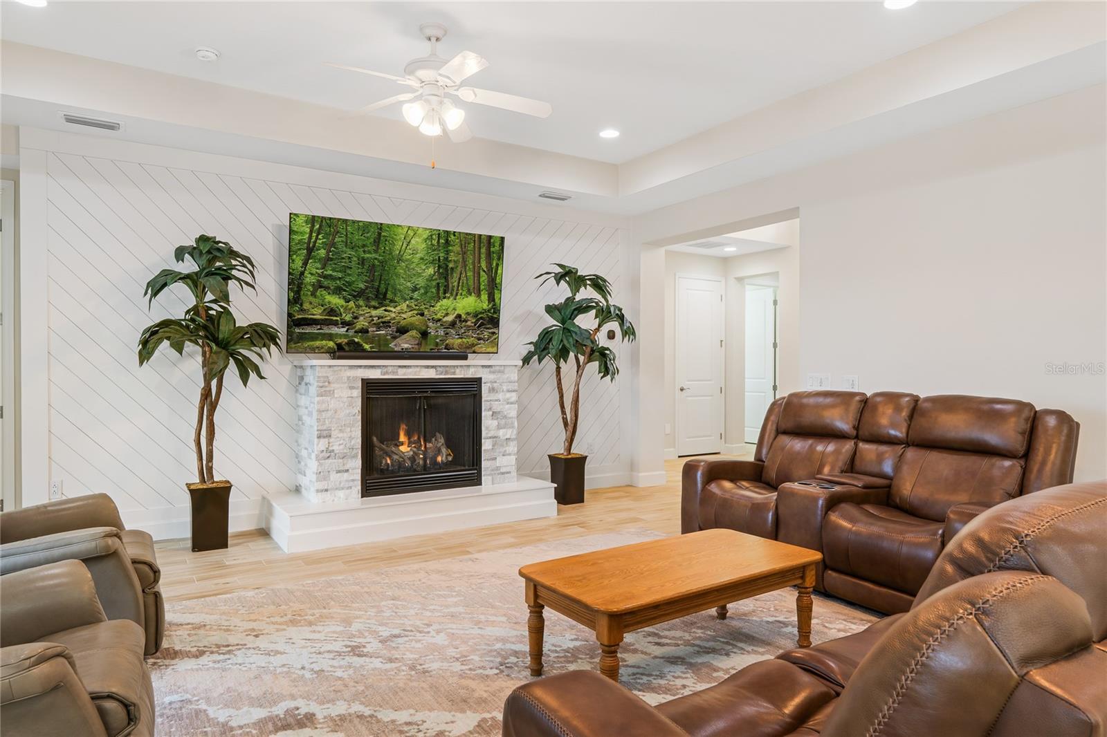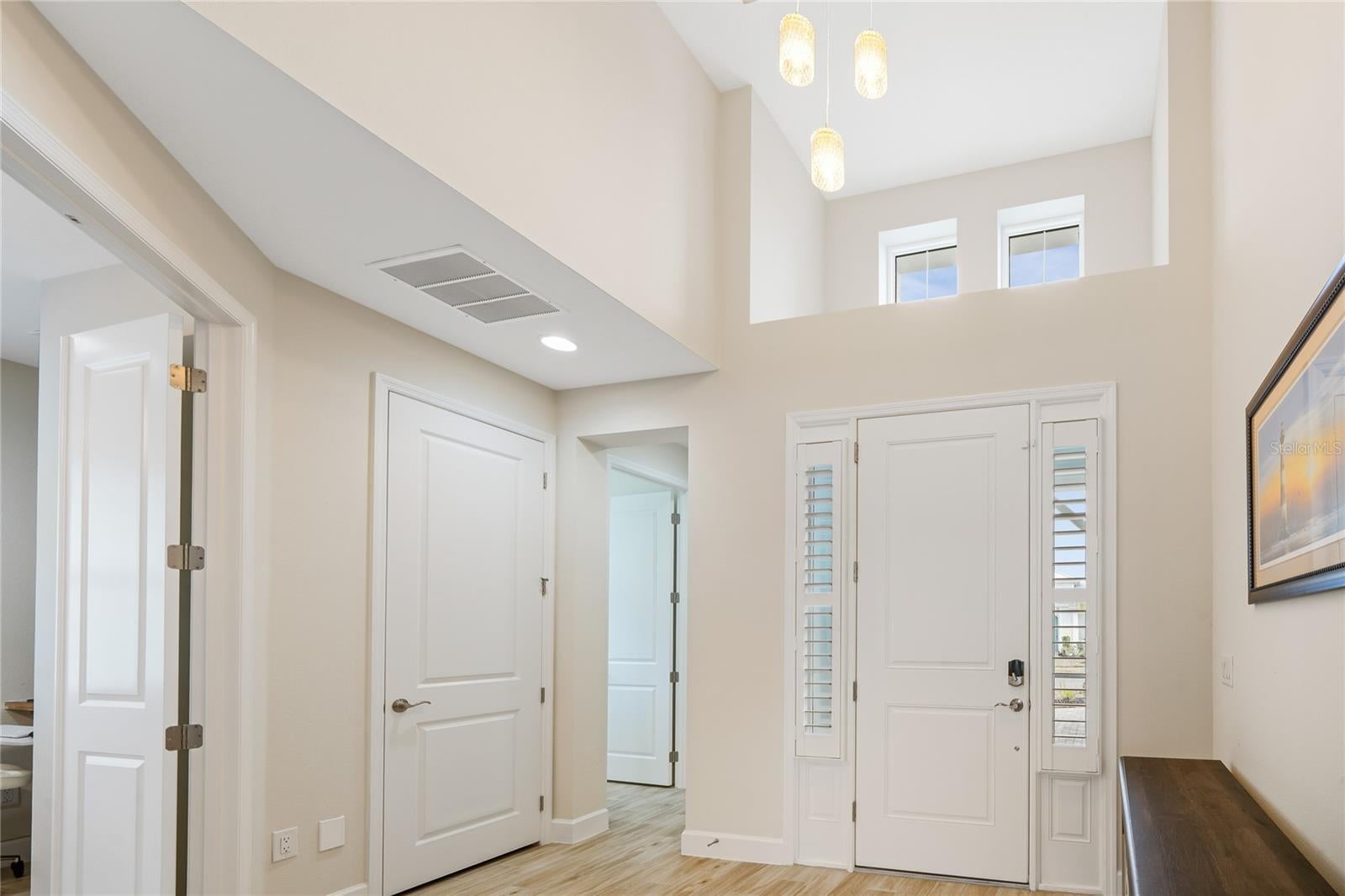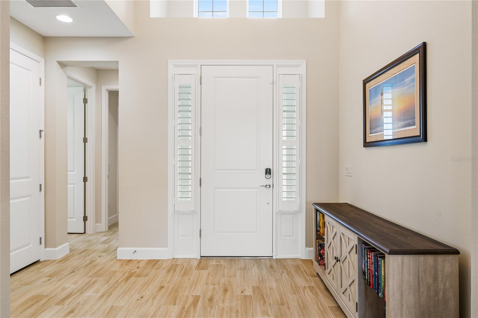 ENJOY THE AMENITIES!!! Private Beach Club with pool on the ocean in Ormond Beach and a coach bus to take you there On-site resort style pool, sports pool, indoor pool, and hot tub TOWN CENTER has a theater, restaurant/bar, fitness center, woodwork shop, Pickleball, tennis, & bocce courts, daily music, and weekend concerts and shows. Low HOA fees includes all the above plus lawn care Welcome to this beautifully upgraded, nearly new 2023-built home located in one of Daytona Beach’s most desirable newer communities. Offering over 2,500 square feet of living space, this thoughtfully designed residence features 3 bedrooms, 3.5 bathrooms, a dedicated den, and a 3-car garage, combining modern design with high-end finishes throughout. The chef’s kitchen is a true highlight, featuring quartz countertops, upgraded stainless steel appliances, a gas cooktop, double wall ovens, 42-inch upper cabinets, under-cabinet lighting, and a tile backsplash. The open-concept layout flows seamlessly into the living and dining areas, enhanced by tile flooring throughout, 8-foot interior doors, upgraded baseboards, and a gas fireplace that adds warmth and character. The primary suite offers a private retreat with two walk-in closets and a spacious bathroom featuring a large walk-in shower with handheld shower head and tile extending to the ceiling. Bathrooms and laundry areas include granite countertops, abundant cabinetry, and thoughtful storage solutions, including extra cabinetry in the laundry room, powder room, and primary water closet. The laundry room also includes a utility sink and additional cabinets. Additional upgrades include plantation shutters on all windows, custom adjustable closet organizers throughout, soft-close upgraded cabinetry, ceiling fans and lighting in every room, a built-in desk in the den, and a keyless front entry. Enjoy Florida living year-round on the expanded and screened lanai, complete with powered drop-down screens on the sliding glass doors. This home also features a whole-house water filtration system, whole-house surge protector, gutters, a Polyurea-coated garage floor, and a floor outlet in the living room. Thoughtfully upgraded and meticulously maintained. This move-in-ready home offers the best of modern Florida living with convenient access to shopping, dining, and everything Daytona Beach has available.