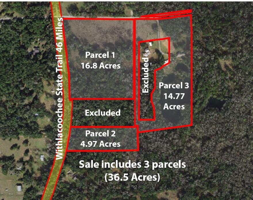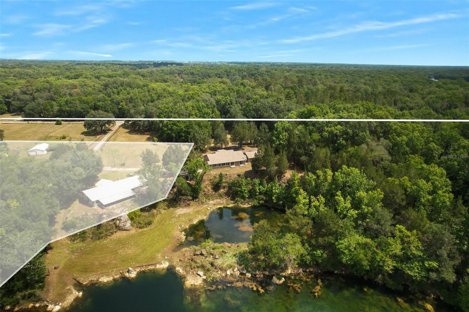 This is the ABSOLUTE MOST UNIQUE AND INCREDIBLE property you'll ever see!! Located on the north side of Historic Brooksville this 36.5 acre property has an old rock quarry on it (about the size of 5 acres) that filled with clear pristine water decades ago creating a crystal clear lake! It's continuously fed by the aquifer/spring with white rock cliffs and boulders!! Breathtaking! This is the kind of property they build golf courses on like at Brooksville County Club and Black Diamond Ranch Golf & Country Club! Imagine owning something privately just as beautiful and better with the spring-fed lake! The 36.5 acres is made up of 3 parcels which all ADJOIN one another for continuous land ownership and all have access to the lake!! This allows you to build more homes if you want to (for family or to rent)! NO HOA! Bring the RV, boats, campers, ATV's, horses, cows, pets...bring it all! Canoe, boat, kayak, fish, hunt, swim, jump from the rocks...endless outside activities for the whole family! Great property for entertaining your family and friends! Like to fish? Just look into the clear water and see the huge bass! Jump in for a refreshing swim! The property is located near where Hernando, Citrus, and Sumter Counties come together near the Withlacoochee River, and it is bordered by the Withlacoochee State Trail for recreation, walking, jogging, biking and enjoying the gorgeous views of nature. The Withlachoochee State Trail is a 46-mile paved trail that traverses rivers and forests, with small town charm and railroad history! This makes for a great way for you to stay in shape, stay healthy, and stay connected to nature! The gorgeous home is perched on the cliff overlooking the amazing quarry lake and offers large glass windows all along the back of the home to see the gorgeous lake views!! The home offers 3 bedrooms + 2 bathrooms + a 2 car detached garage connected by a breezeway!! The property is gorgeous with large beautiful trees and a peaceful serenity most long for! It's as beautiful as one can imagine! The beautiful home was built in 2014 and has 2,184 sq ft of living space and 3,192 sq ft total! Charming country-style front porch! The kitchen is upgraded with real wood cabinets and granite countertops! Wood floors throughout! OPEN FLOOR PLAN - see everything from the kitchen...the dining room, great room, office area (or sitting area), and the great views of the lake out of the large glass windows! The home has a split floorpan for privacy for the master suite! The lake is affectionately named Honeymoon Lake on the Map! THIS IS AN ABSOLUTE MUST SEE!!!!