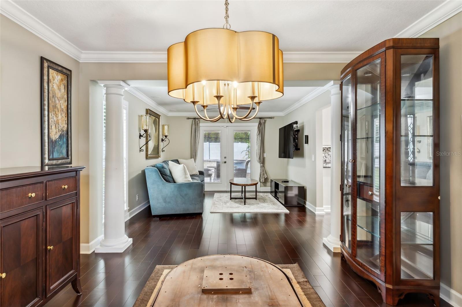 - Built-in Features, Crown Molding, Living Room/Dining Room Combo, PrimaryBedroom Upstairs, Smart Home, Wet Bar, Window Treatments