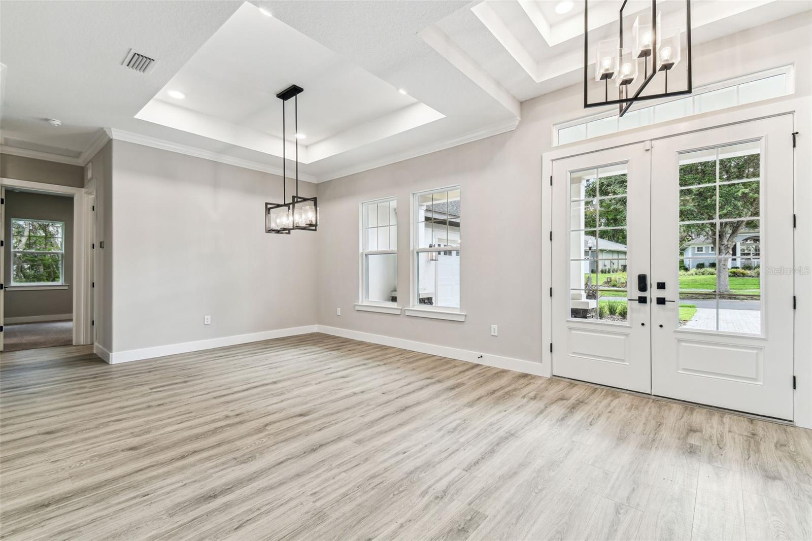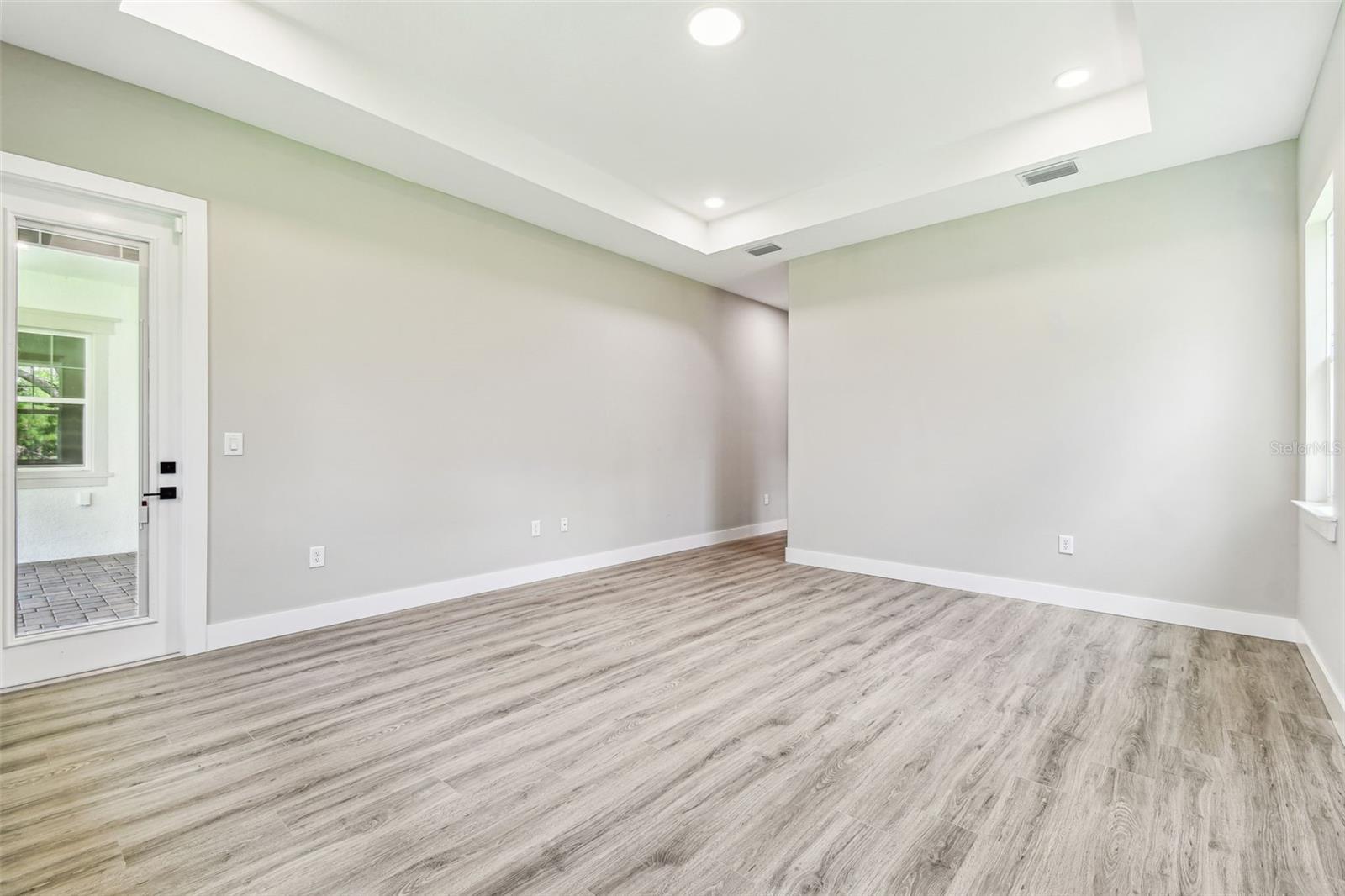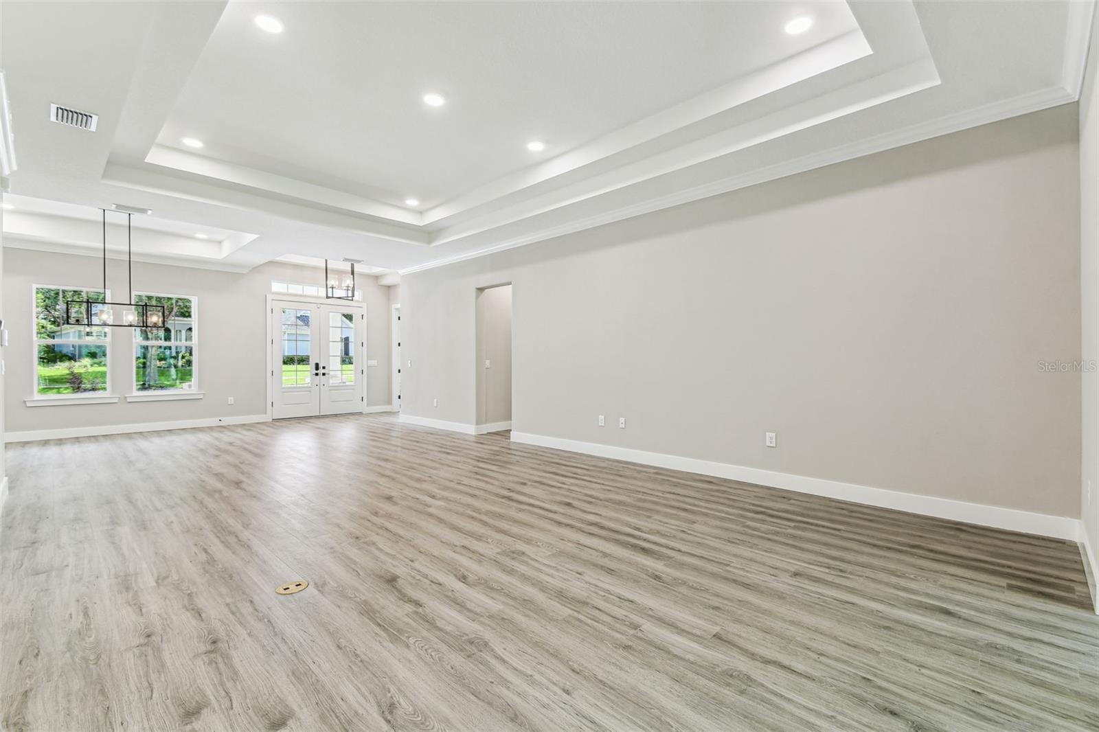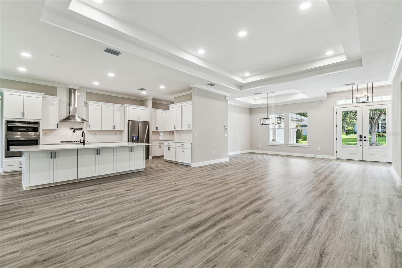 - Eat-in Kitchen, High Ceilings, In Wall Pest System, Kitchen/Family Room Combo, Open Floorplan, Pest Guard System, Primary Bedroom Main Floor, Smart Home, Solid Surface Counters, Split Bedroom, Thermostat, Tray Ceiling(s), Walk-In Closet(s)