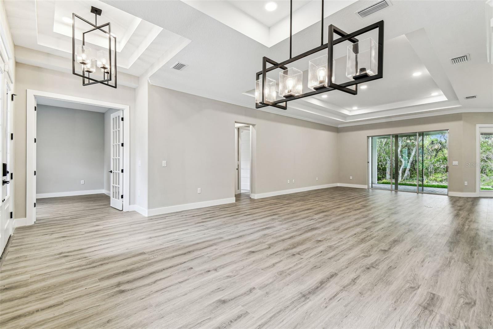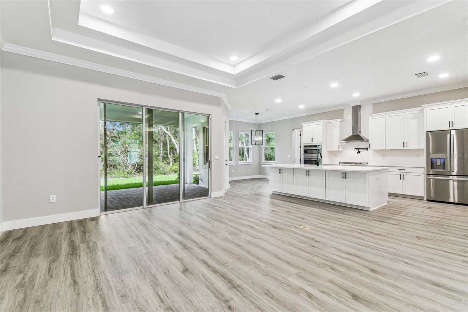 FALL SAVINGS ARE HERE!!! The Augusta floor plan by Vitale Homes is the perfect blend of luxury, comfort, and craftsmanship—designed with the finest details in mind. Nestled on a stunning, treed lot with a serene conservation backdrop, this nearly 2,600-square-foot home offers elegant touches and modern conveniences that elevate everyday living. From tall, tray ceilings with crown molding to expansive outdoor living spaces and timeless finishes, every detail makes this residence truly one of a kind. Step through 8-foot double entry doors into a spacious foyer with a designer ceiling and a view that extends through the great room to the lanai beyond. Just off the foyer, the light-filled living room impresses with its tray ceiling, double French doors, and oversized windows framing the natural beauty outside. The owner’s suite is a private retreat, featuring a spa-inspired bathroom with a freestanding soaking tub, large frameless glass shower, oversized walk-in closet, private water closet, and dual vanities with quartz countertops and vanity-length mirrors. A guest suite enjoys its own private bath with quartz counters, soft-close cabinetry, designer fixtures, and a tiled tub-shower combination. Toward the back of the home, a third bedroom sits beside another full bath—also accessible from the lanai—perfectly designed as a pool bath. At the heart of the home, the open great room, kitchen, and dining area create a seamless flow for everyday living and entertaining. The great room’s 10-foot tray ceiling with crown molding adds a touch of grandeur, while the gourmet kitchen delights with a massive island featuring cabinetry on both sides, quartz countertops, designer lighting, a tile backsplash, and built-in luxury appliances. A butler’s pantry offers additional storage and counter space, while the walk-in pantry ensures organization is effortless. The laundry room continues the thoughtful design with upper and lower cabinets, a quartz folding counter, and a built-in sink. The oversized garage lives large—nearly the size of a three-car design—with soaring ceilings, a side-entry golf cart door, and sleek epoxy flooring. Every inch of this home reflects Vitale Homes’ signature attention to detail, from the designer fixtures to the refined, modern aesthetic that defines true luxury living. Located within the prestigious Southern Hills Plantation, this remarkable home offers more than just a place to live—it delivers a lifestyle. Residents enjoy a private, manned gate; a Pete Dye Signature Championship Golf Course; a driving range with 6-hole short course; two on-site restaurants; a fitness center; resort-style pool; and tennis and pickleball courts. Experience the perfect blend of privacy, recreation, and natural beauty. This home is move-in ready and waiting for its new owner—schedule your private tour today and discover the best of modern country club living.