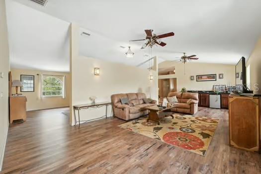 - Ceiling Fans(s), Eat-in Kitchen, High Ceilings, Living Room/Dining Room Combo, Primary Bedroom Main Floor, PrimaryBedroom Upstairs, Split Bedroom, Walk-In Closet(s), Wet Bar