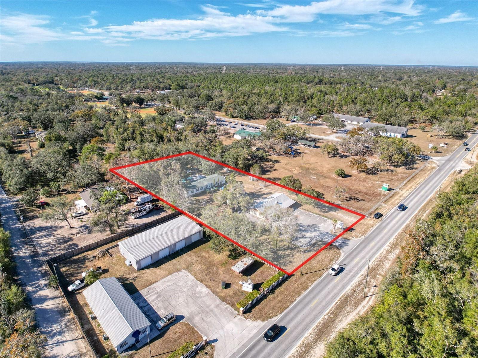 Discover this unique Shady Hills property that seamlessly blends business potential with comfortable living. Featuring a 2000 square foot commercial space perfect for restaurant, bar, pizzeria or bakery/cafe. This property also offers a private 2000 square foot mobile home oasis tucked away in the back complete with a sparkling pool and serene surroundings. Property highlights for the restaurant: Metal roof, front and side porches to enhance curb appeal and lots of outdoor seating, signage, prime location close to schools, 3 miles away from the new 55+ resort, conveniently located next to Elsie park and 2 miles from another upcoming community and a large parking lot to top it all off. Property highlights to the residence: 2001 Mobile, completely tiled, 4 year old roof, 4 year old HVAC system, spacious master bedroom with a space for walk in closet or home office, wood burning fireplace, modern kitchen with new refrigerator, stove and lots of cabinets, indoor laundry with cabinets, game room overlooking the family room, 3 additional bedrooms with walk in closets. Outdoor Amenities include: Fully fenced, 24x18 storage shed, stunning 17x32 fiberglass pool with a waterfall and salt water system and cabana, 2 porches the rear one is screened with extra electric for plenty of lights and fans. This property is truly a cornerstone of the Shady Hills area, offering endless possibilities for entrepreneurs and families alike. If you have dreamed of running a thriving business and retreating at the end of the day into your private retreat this unique property offers it all. Restaurant could be purchased separately.
