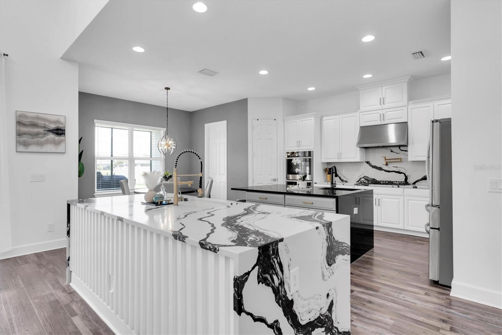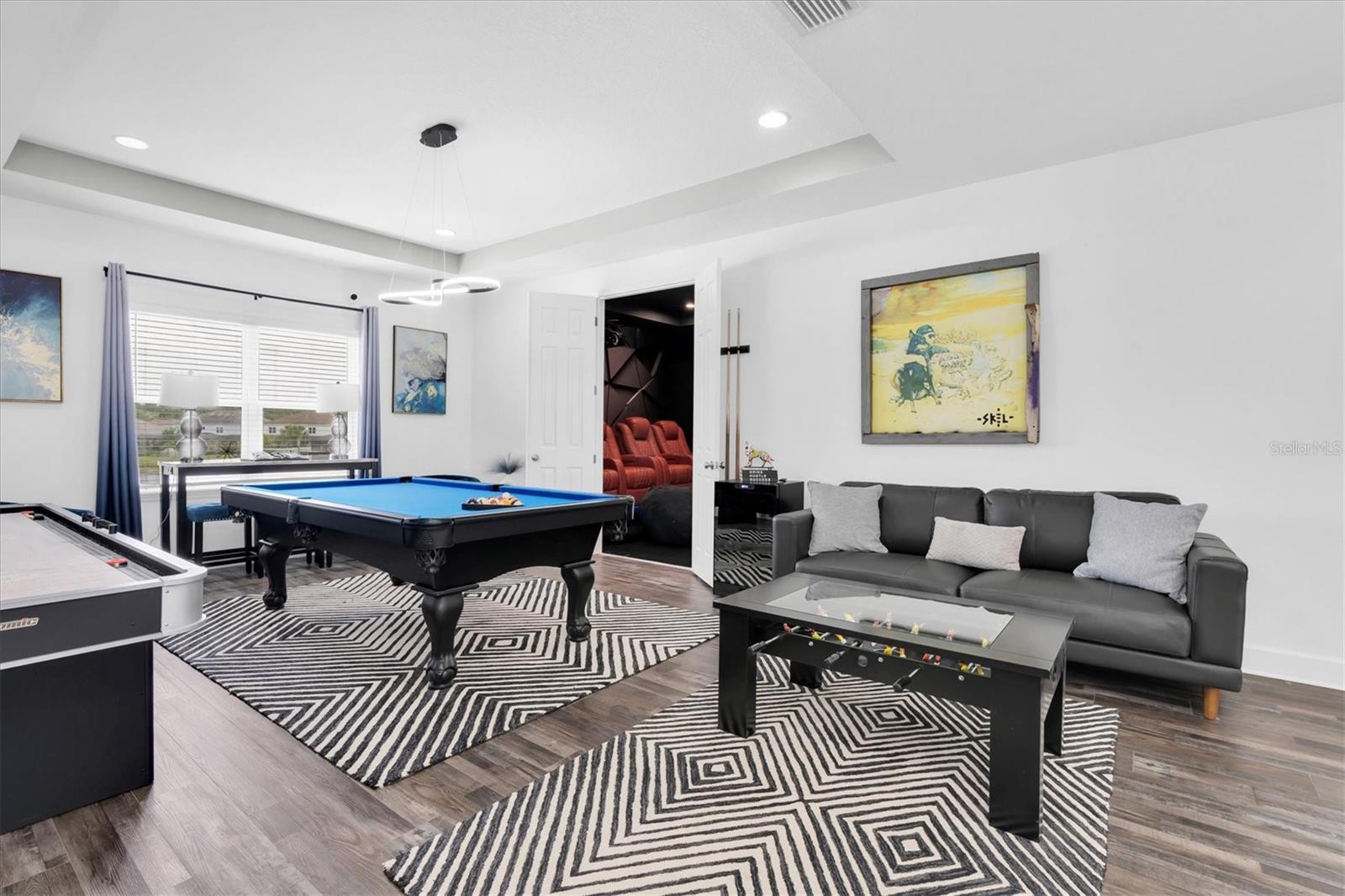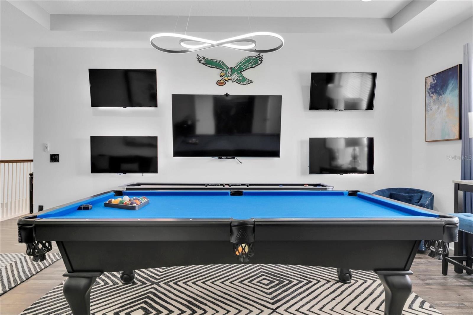 Welcome to 4188 Barbour Trail in the sought-after community of Starkey Ranch in Odessa, FL. This beautifully crafted home offers an impressive 6 bedrooms, 3.5 bathrooms, and over 4,100 square feet of thoughtfully designed living space. The popular Bimini floor plan by Taylor Morrison showcases a blend of elegance and functionality, ideal for both everyday living and upscale entertaining. On the main level, the expansive owner’s suite provides a private retreat with a tray ceiling, a spa-like bathroom featuring a soaking tub, dual vanities, a walk-in shower, and two custom walk-in closets. One of which is being used as a home gym. Soaring ceilings and an open-concept layout define the main living area, while the formal dining room offers a refined space for hosting gatherings. The gourmet kitchen is a culinary dream, complete with dual islands, built-in stainless steel appliances, pot filler, a gas cooktop, and a cozy breakfast nook that overlooks the screened patio and serene backyard. Upstairs, five additional bedrooms provide flexibility for family, guests, or a home office, along with a spacious loft currently be used as a game room, and a dedicated home theater room with Dolby Atmos- Sony 4K projector, speakers, and screen are included. A Jack-and-Jill bathroom connects two of the bedrooms, while the remaining bedrooms share a third full bath, adding both convenience and privacy. Step outside to enjoy the 75' wide x 150' deep, oversized lot with peaceful views of the pond and conservation area—an ideal backdrop for creating your dream outdoor oasis. The home also includes a 3-car garage with a custom tandem bay and 240V EV charger, a butler's pantry, tankless gas water heater, and laundry room with a pet washing station. Washer and dryer included. All other furnishings can be negotiated with the sale of the home. Set within one of Tampa Bay’s most desirable master-planned communities, residents of Starkey Ranch enjoy access to top-rated schools including Starkey Ranch K-8 that features three magnet programs- Computer Science, Fine Arts, and World Languages. You have access to miles of scenic nature trails, parks, three community pools and playgrounds, a neighborhood Publix, and plenting of dining options. This is more than just a home—it’s a lifestyle of comfort, convenience, and natural beauty. Don’t miss the opportunity to make it yours.