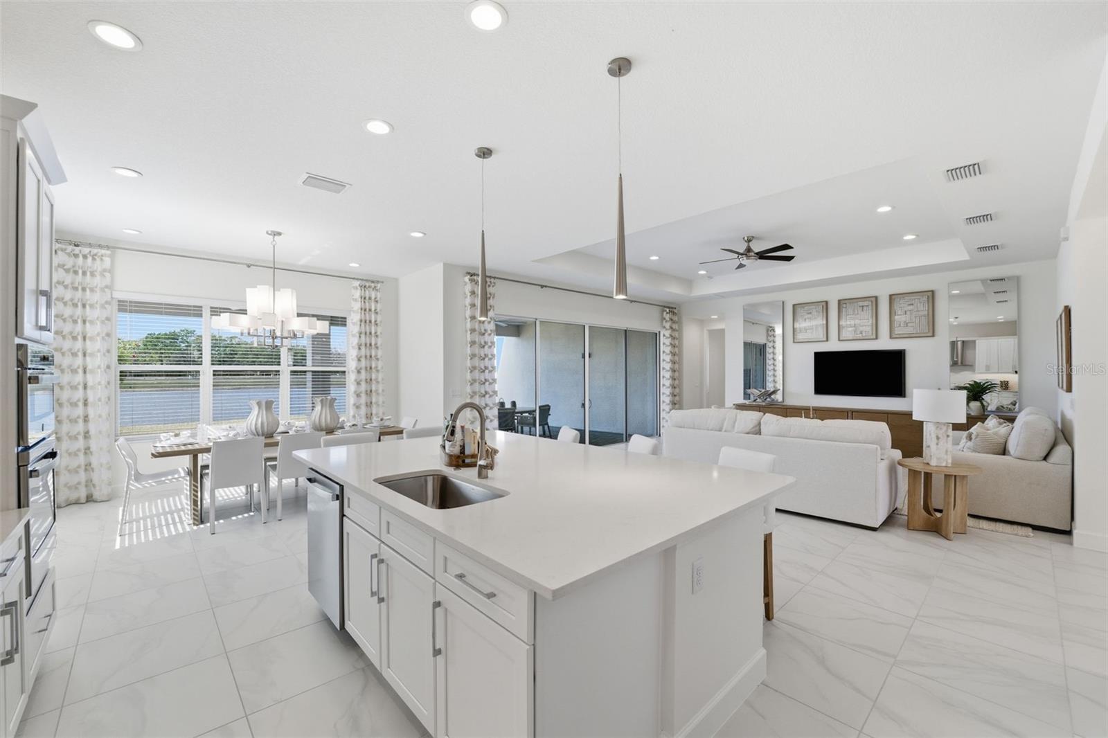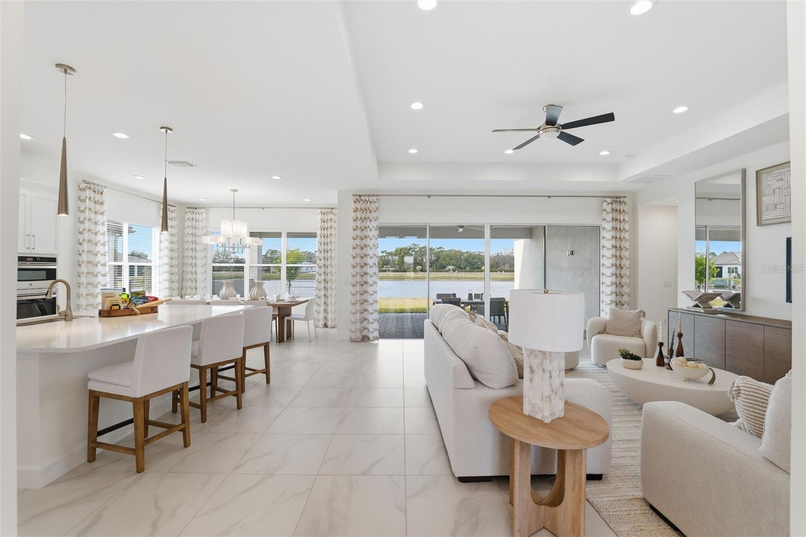 - Eat-in Kitchen, High Ceilings, Kitchen/Family Room Combo, Open Floorplan, Primary Bedroom Main Floor, Solid Surface Counters, Thermostat, Walk-In Closet(s)