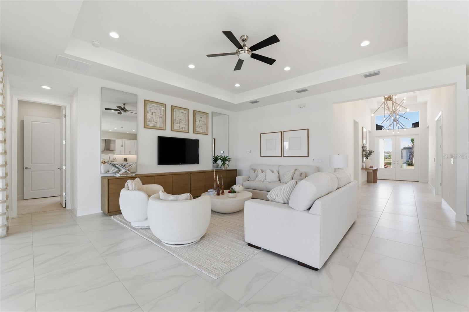 Under contract-accepting backup offers. Under Construction. ***PURCHASE PRICE INCLUDES FURNISHED SPEC HOME.*** A recent builder incentive of $33,116 has been applied to the list price! One or more photos are from professionally decorated model home, colors will vary. Welcome to Valencia Ridge, Wesley Chapel’s premier 55+ resort-style community where every day feels like a vacation. This highly sought-after Emerald model has been thoughtfully designed to combine luxury, functionality, and carefree living—all in a vibrant, amenity-rich setting on Florida’s stunning Gulf Coast. Boasting 4 spacious bedrooms, a versatile den, 4 full bathrooms, 1 half bath, and a 3-car garage, this home offers plenty of room for entertaining, hosting family, or simply enjoying your own serene space. Step inside to an open-concept great room layout, perfect for modern living. The chef-inspired kitchen is a showstopper, featuring: Gas range and stainless steel chimney-style hood, modern appliances, including a refrigerator, under-cabinet lighting and a stylish backsplash, Quartz countertops and generous cabinetry. Additional upgrades throughout include: Glass entry door, 2" white faux wood blinds, recessed lighting in the great room, dining area, primary bedroom, and bathrooms, Pre-plumb for a water softener system, Fully equipped laundry room with washer and dryer! This home is move-in ready and crafted for both elegance and ease of living. Valencia Ridge redefines 55+ living with a vibrant social calendar, Resort-style amenities including a clubhouse, fitness center, pools, and more. A warm, welcoming community designed for an active and enriching lifestyle. Don’t miss your chance to be part of Wesley Chapel’s most exciting new 55+ community. Schedule your visit today and discover the exceptional lifestyle waiting for you at Valencia Ridge!