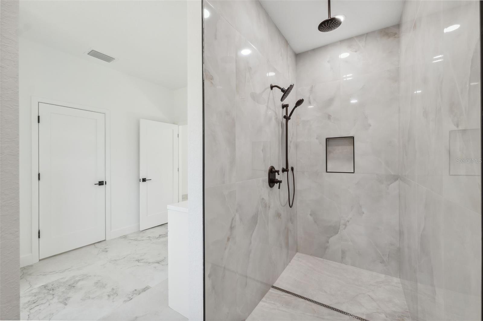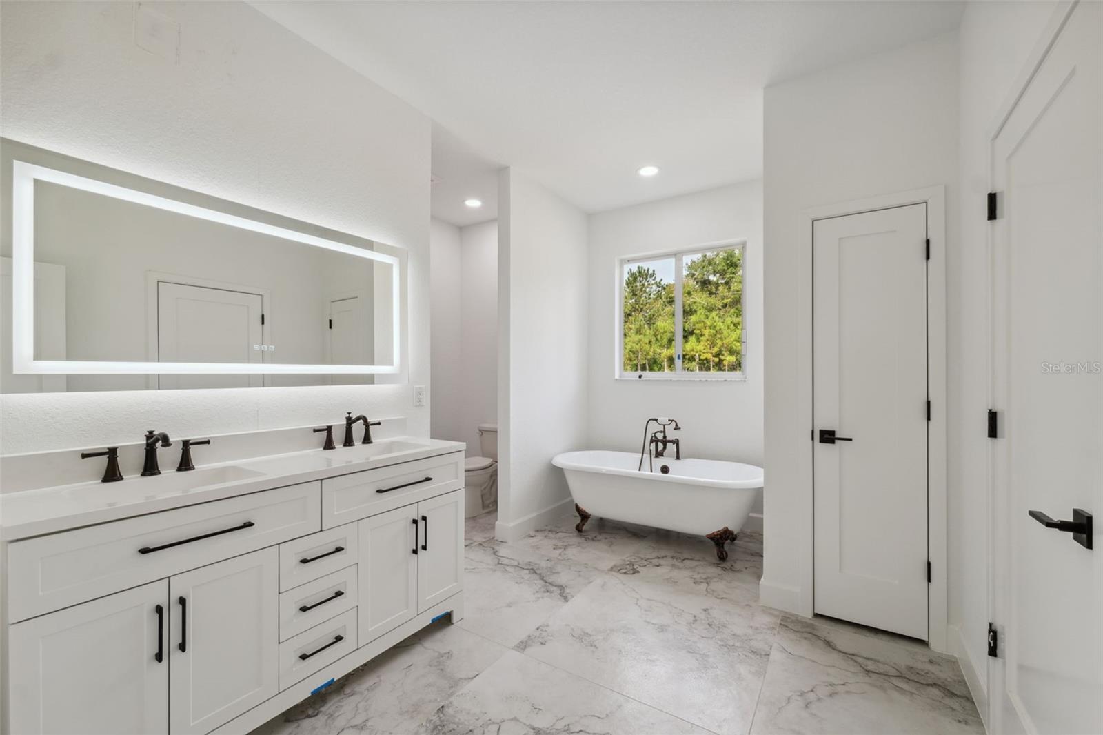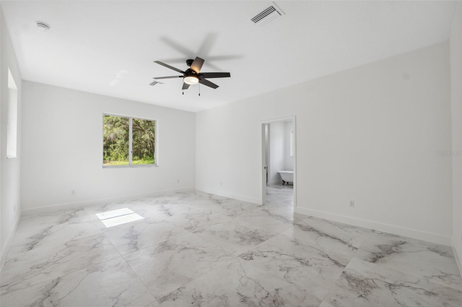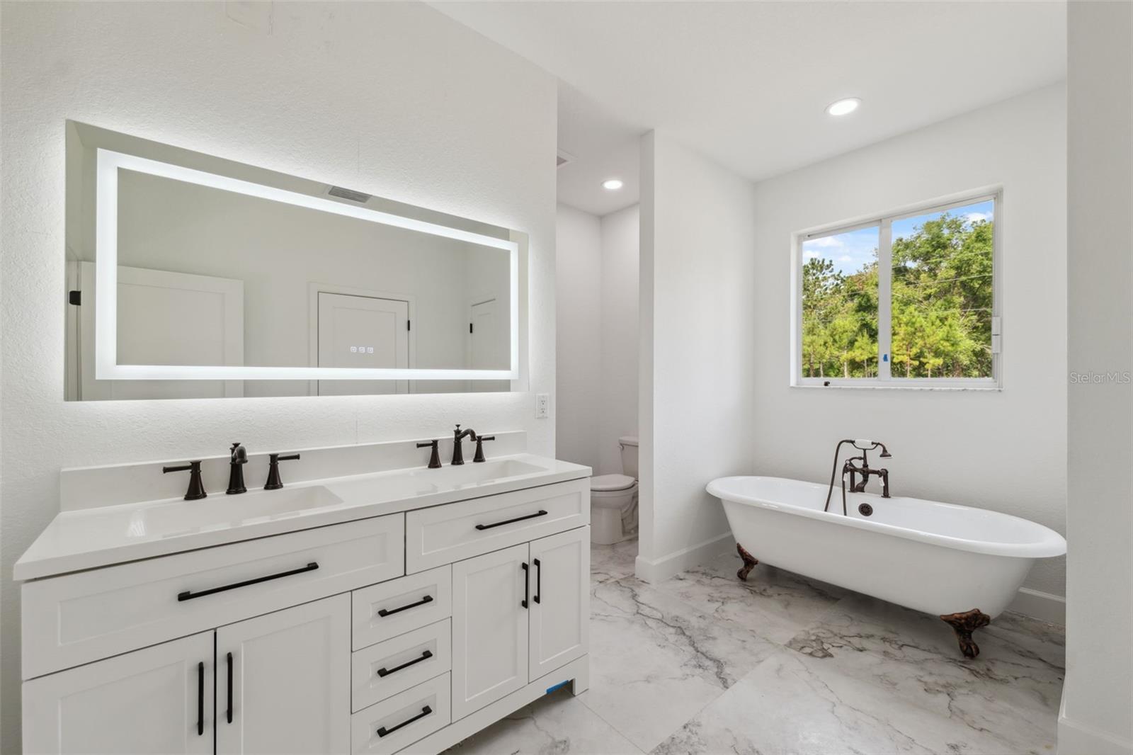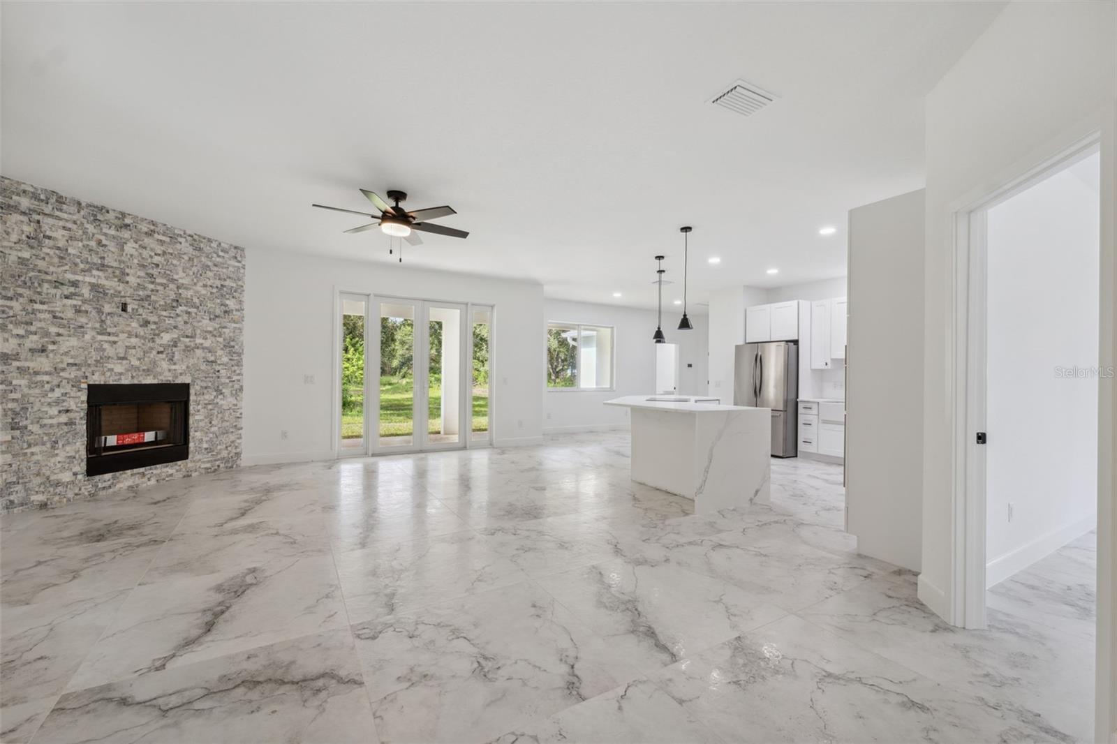 Brand-new custom farmhouse-style home on 2.3 acres in Brooksville. This property combines modern efficiency with classic design elements throughout. The open-concept layout includes 4 bedrooms, 2.5 baths, and a spacious living area featuring a wood-burning fireplace. The kitchen is equipped with an induction cooktop, double wall oven with microwave and air fryer, wine cooler, farm sink, dishwasher, and a large pantry with double doors. Interior finishes include 40"x40" Italian ceramic tile flooring, all LED lighting, Icynene spray foam insulation, impact glass windows, and a smart HVAC system. The owner’s suite offers a stand-alone shower with rain and handheld fixtures, a clawfoot tub, dual vanities with backlit mirrors, a linear drain, and a private water closet. The second full bath includes a tub/shower combo with tile to the ceiling. Additional features: tankless gas water heater, 200-amp service, impact-rated insulated garage door, epoxy garage floor, garage storage room, attic storage with plywood, whole-home generator hookup, gutters, front porch with tongue-and-groove ceiling, covered rear lanai, and a septic system with lift station. The laundry room includes a sink and pedestal washer/dryer. Seller is offering a $5,000 credit toward custom closet and pantry build-out.