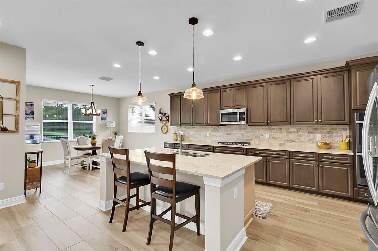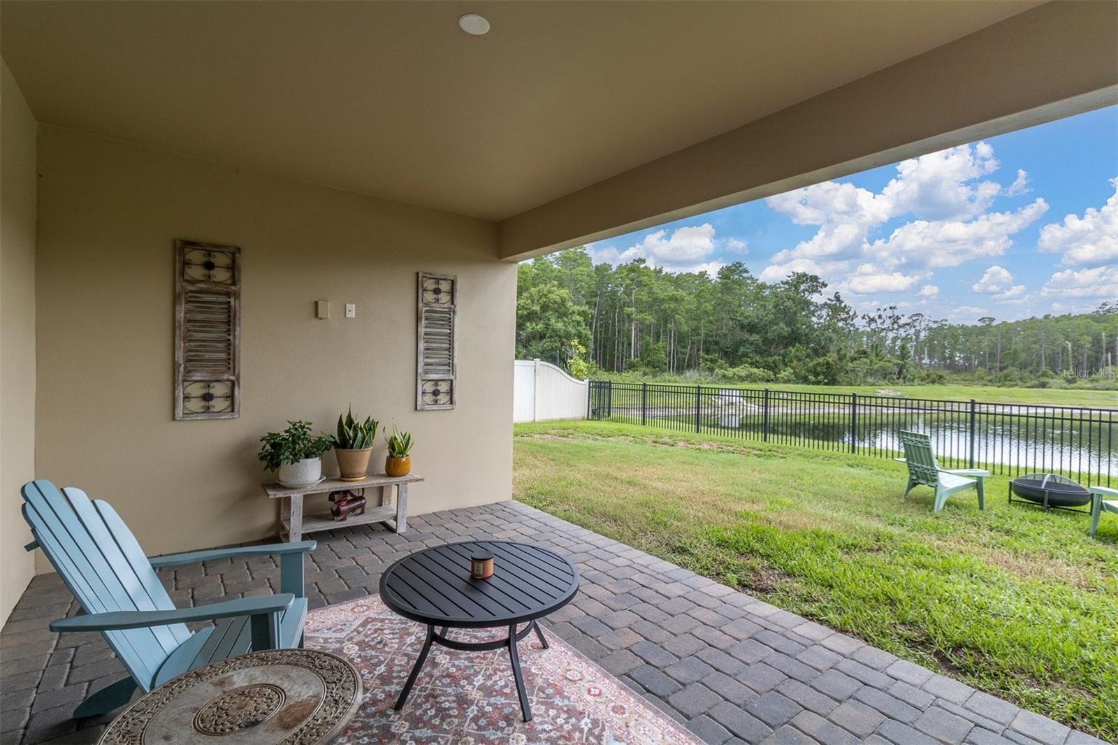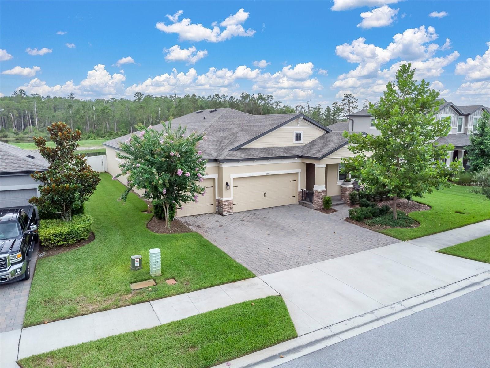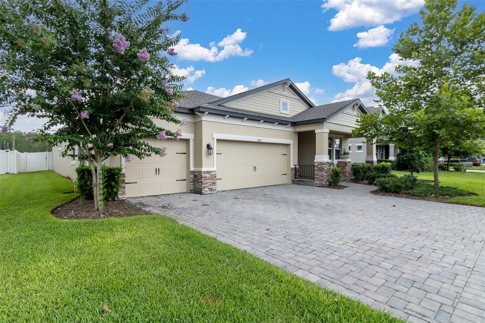 Seller is offering $10K towards buyer's closing costs/rate buydown! Built in 2019, across from Albritton Park, this beautifully maintained 4-bedroom, 2.5 bath ranch style home has fresh exterior paint and sits on an oversized, fenced lot with peaceful pond views and a spacious 3-car garage. Inside, is a wonderful open floor plan with high ceilings, recessed lighting and ceramic tile flooring in the main living areas. The kitchen is the true heart of the home, featuring granite countertops, stainless steel appliances, gas cooking, walk-in pantry, and a custom coffee bar perfect for both everyday living and entertaining. The split-bedroom floor plan provides privacy, with walk-in closets and updated bathrooms showcasing modern finishes. Since this home is only 5yrs old all major systems including the roof, HVAC, plumbing, electrical, appliances, gas water heater, and water softener are just five years young. Enjoy outdoor living with a covered front porch and a covered back patio overlooking a fully fenced backyard with both wrought iron and PVC fencing. Located in the award-winning Starkey Ranch community, residents enjoy miles of scenic trails, resort-style pools, playgrounds, dog parks, sports fields, community pavilions, and the highly rated Starkey Ranch K-8 School and public library. This is more than a home—it’s a lifestyle!