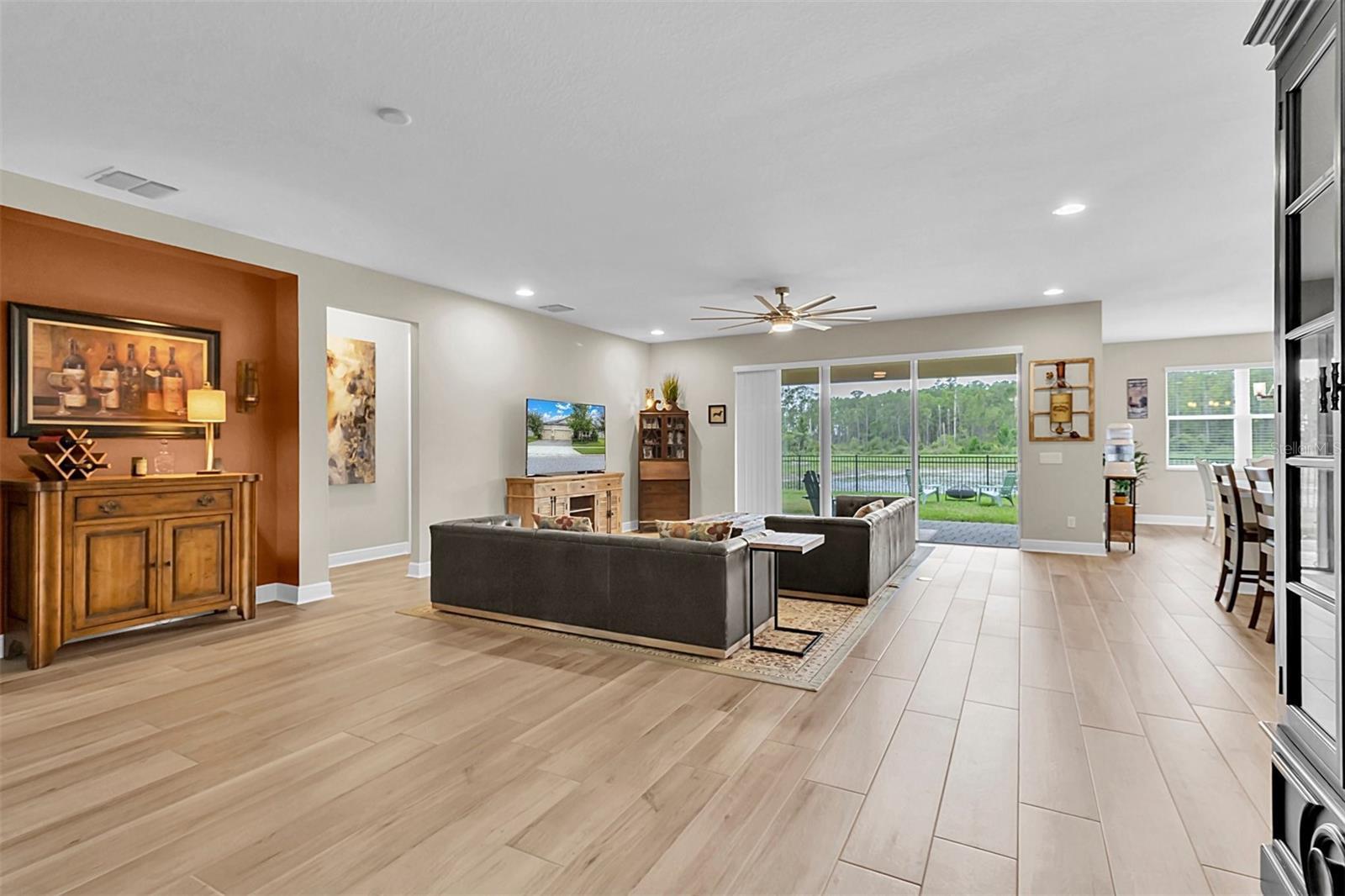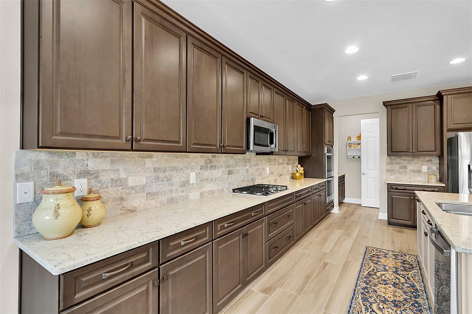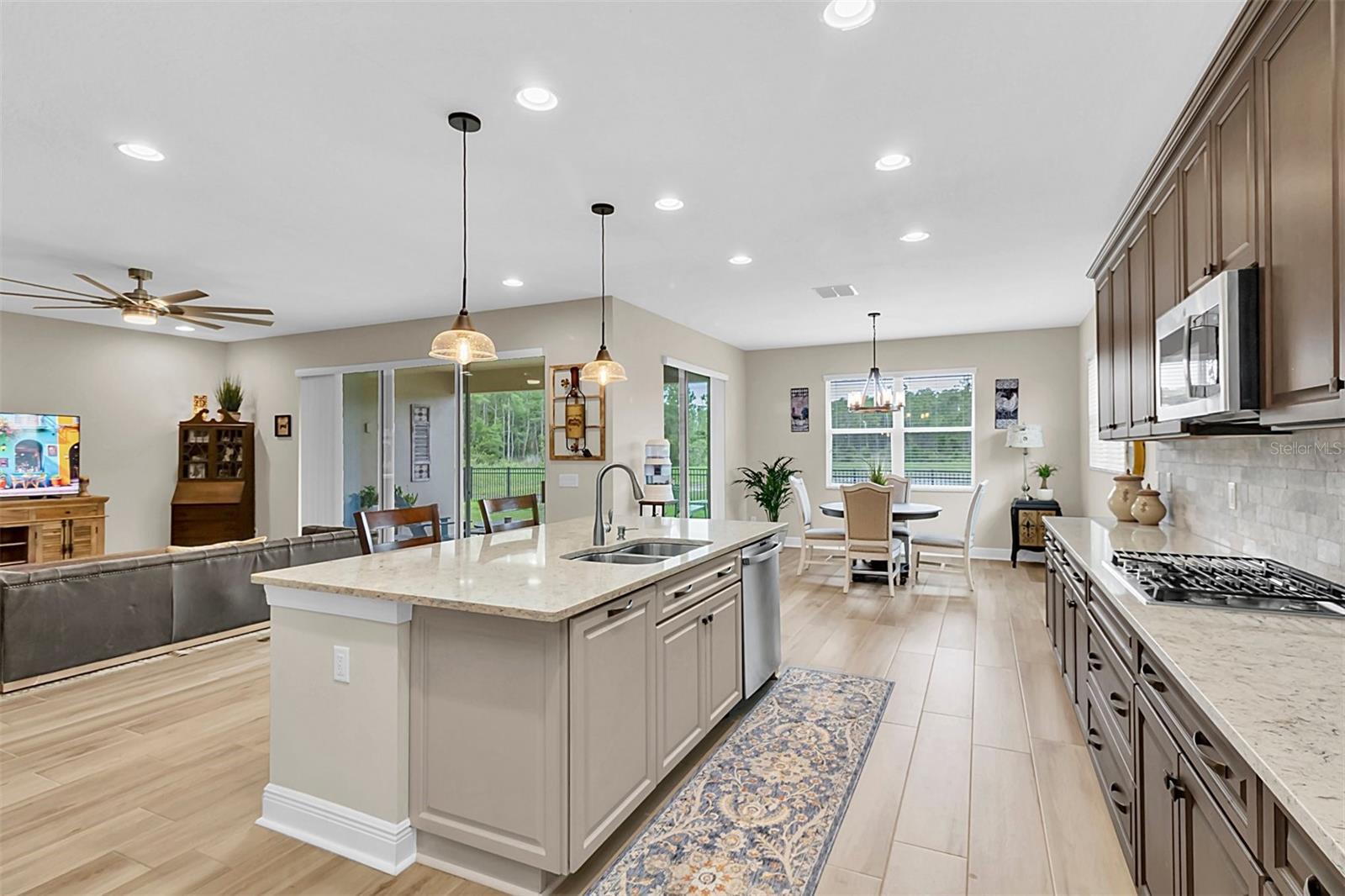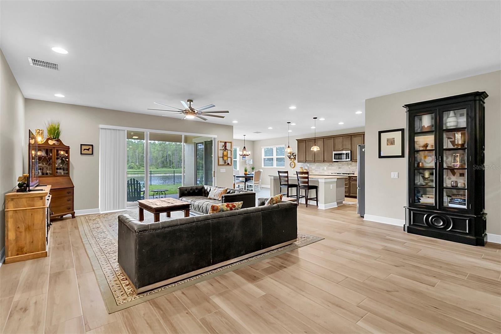 Seller is offering $10K towards buyer's closing costs/rate buydown! Built in 2019, across from Albritton Park, this beautifully maintained 4-bedroom, 2.5 bath ranch style home has fresh exterior paint and sits on an oversized, fenced lot with peaceful pond views and a spacious 3-car garage. Inside, is a wonderful open floor plan with high ceilings, recessed lighting and ceramic tile flooring in the main living areas. The kitchen is the true heart of the home, featuring granite countertops, stainless steel appliances, gas cooking, walk-in pantry, and a custom coffee bar perfect for both everyday living and entertaining. The split-bedroom floor plan provides privacy, with walk-in closets and updated bathrooms showcasing modern finishes. Since this home is only 5yrs old all major systems including the roof, HVAC, plumbing, electrical, appliances, gas water heater, and water softener are just five years young. Enjoy outdoor living with a covered front porch and a covered back patio overlooking a fully fenced backyard with both wrought iron and PVC fencing. Located in the award-winning Starkey Ranch community, residents enjoy miles of scenic trails, resort-style pools, playgrounds, dog parks, sports fields, community pavilions, and the highly rated Starkey Ranch K-8 School and public library. This is more than a home—it’s a lifestyle!