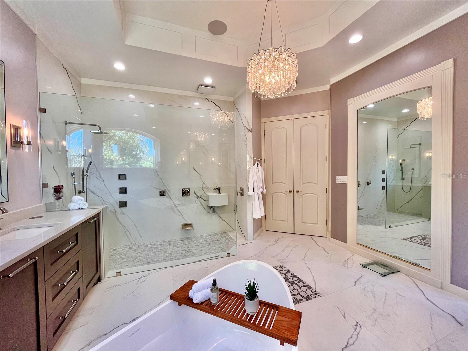 Welcome to this stunning lakefront estate on nearly an acre of professionally landscaped grounds. The estate sits on a spring-fed lake that backs up to a state nature preserve and is just three miles from the ocean. This custom-built masterpiece invokes the sophistication of an updated smart-home. It comes FULLY FURNISHED and has a BRAND-NEW ROOF (2025). You are welcomed through the double glass front doors by a stunning infinity lake view and fourteen-foot coffered ceilings which continue throughout the palatial interior. Marble flooring, marble walls, and quartz counters are just a few of the meticulous details. This home is the epidemy of a smart-home with a top-of-the-line Control4 home automation system. With a touch of your finger from your cell phone you can control the lights, motorized shades, whole house surround sound, TV’s, front door intercom/camera, AC thermostats, smart door locks, and exterior security cameras from anywhere in the world with an internet connection. This immaculate SINGLE-STORY retreat includes 5 bedrooms, each with their very own en-suite bathroom and walk-in closet. There is a great room, family room, sitting room/library, formal dining room, a home office with custom cabinets, a meditation room, and your very own exercise room. The master bedroom is for the most discerning of owners. It has a stunning view of the spring-fed lake, double trey ceilings, a mini bar with refrigerator, hardwood floors, a chandelier, as well as his and hers walk-in closets. The master bath has marble floors, soft close drawers, a freestanding soaker tub and a walk-in frameless glass shower with rain head plus multiple heads. Other distinctive features in the home include; Motorized shades. Cove lighting with various colors to suit your mood. Faux painted walls. Imported chandeliers. Four ecobee smart thermostats making it four-zone energy efficient. In the kitchen there is a sensor touch main sink, a second prep sink, a Sub-Zero refrigerator and an Insta-hot faucet. There are two gas fireplaces, both remote controlled. There is also a Tesla charging station in the garage. There are actually TWO two-car garages big enough for four cars, plus extra space for a golf cart or other toys. Outside offers privacy and luxury with a RECENTLY REMOLDED AND RESURFACED POOL (2024) that overlooks amazing sunsets on the lake. There is lanai with outside sink, outside surround sound, extensive landscape lighting, mature fruit trees, and over 1500 square feet of raised patio space. Located in the exclusive 24/7 guard staffed gated community of Lake in the Woods, which has tennis courts, pickle ball court, playground, and two lakes where canoes are allowed. Wild life abounds in this serene community; Turkey flocks, deer, ducks, egrets, sand hill cranes, ospreys, golden eagles, humming birds, and hawks. The community is conveniently located just 7 minutes to Weeki Wachee Springs State Park for kayaking and paddle boarding. 10 minutes to Hernando Beach for boating and deep sea fishing. 15 minutes to Pine Island Beach for swimming and sunsets. 45 minutes to the Tampa International Airport, and less than 60 minutes to St. Pete Beach, which was named the number one beach in America.