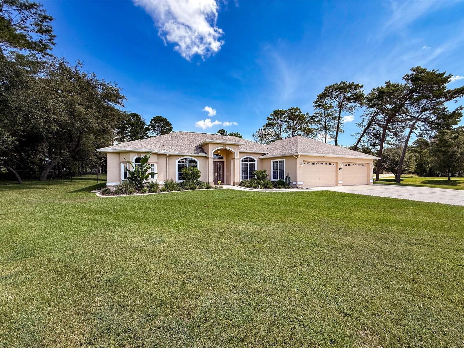 Welcome to Woodland Waters on the Nature Coast in Weeki Wachee Florida. This amazing 4 bedroom 3.5 bath home is stunning inside and out; situated on a meticulously manicured and maintained one acre homesite. Quiet and private, your home becomes your getaway! Beautiful grounds show off pride of ownership, from the lush lawn, thoughtful landscaping, custom curbing around the plant beds and perimeter greenery. The back yard is fully fenced too, and your pets are welcome here. The elegant entry doors open up to reveal the lovely interior, with a view directly outside and focused on the crystal clear caged pool and lanai. Inside, the details are all top shelf, including a brand New Kitchen with the latest soft close custom wood cabinets and drawers, spice racks, stainless appliances with gas range, and exquisite granite counters. Handsome and durable LVP flooring, Crown molding, tray ceilings, spotless alabaster trim, and French doors. To the left, your office (or 5th bedroom) is private and convenient, then follow down the hall to the Primary Suite, and you’ll be impressed by the roominess, as well as the natural light from the panoramic windows and the French door access to the pool. The En Suite bath is amazing, providing lots of space to get ready to go out! Glass fronted shower with custom shower heads plus an inviting Garden tub for a relaxing soak. Loads of closet space! And the split floorplan adds extra quiet and exclusivity. Through the living space and into the open casual space all open to the family room with new gas fireplace and French doors to the pool deck. 3 more bedrooms on this side of the house, one with a convenient full bathroom with direct access to the pool. The 3rd bath is nestled between bed 3 & 4, and the versatile laundry room is oversized and handy to the bedrooms. The massive garage is a huge bonus, with room for 4 cars plus all your toys, and even sports an air conditioned ½ bath!! The rear overhead door on the garage adds lots of convenience and versatility, and on the side there’s plenty of extra parking!!! Two 50 amp power services for camper or EV, and the soffits are wired with outlets installed for custom lighting or Christmas lights!. The pool deck surrounds your relaxation source, and the lanai is set up like a resort, with covered spaces for lounges or tables, plus an outdoor kitchen!! Over the past 5 years, much has been upgraded by the proud owners (ask for a full list!), but the major items are the new roof, new kitchen & appliances, new flooring, paint, and the list goes on and on!! Truly a unique offering, move in ready, come see.