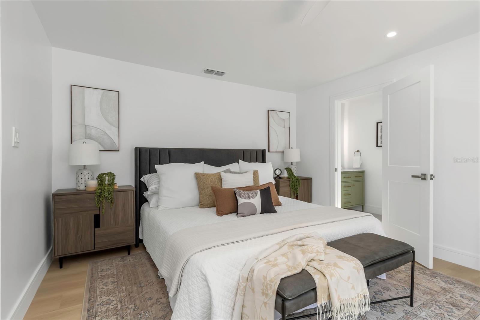 - Ceiling Fans(s), Kitchen/Family Room Combo, Open Floorplan, Primary Bedroom Main Floor, Solid Surface Counters, Split Bedroom, Stone Counters, Thermostat, Walk-In Closet(s)