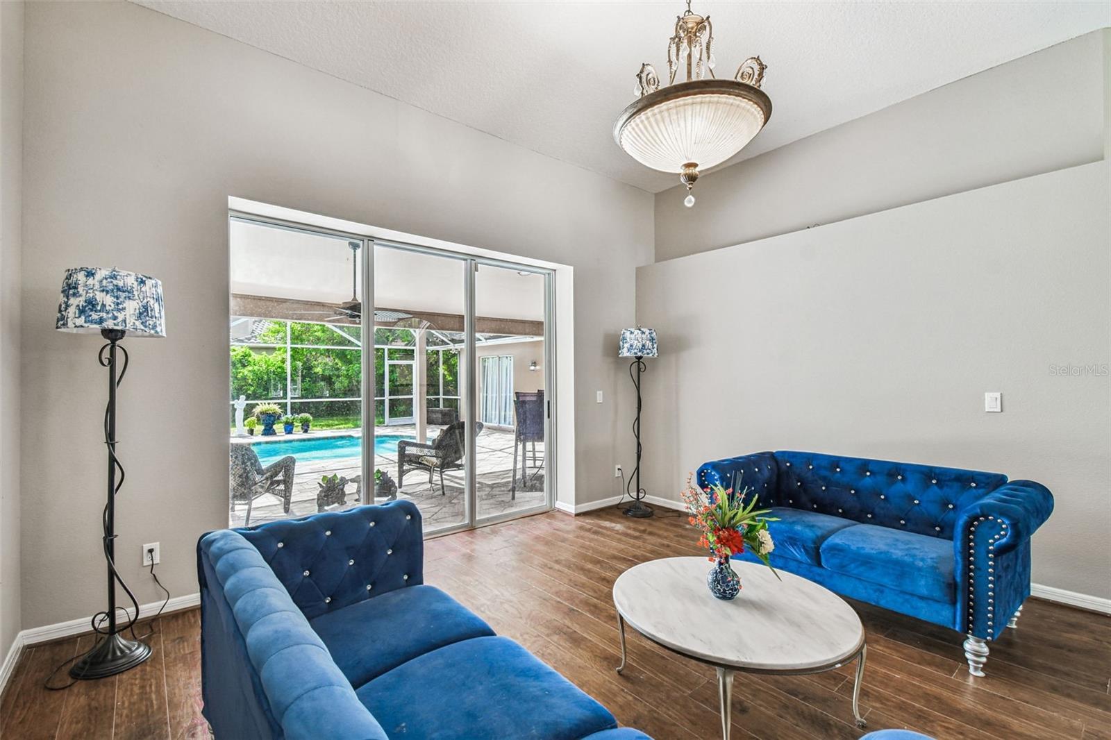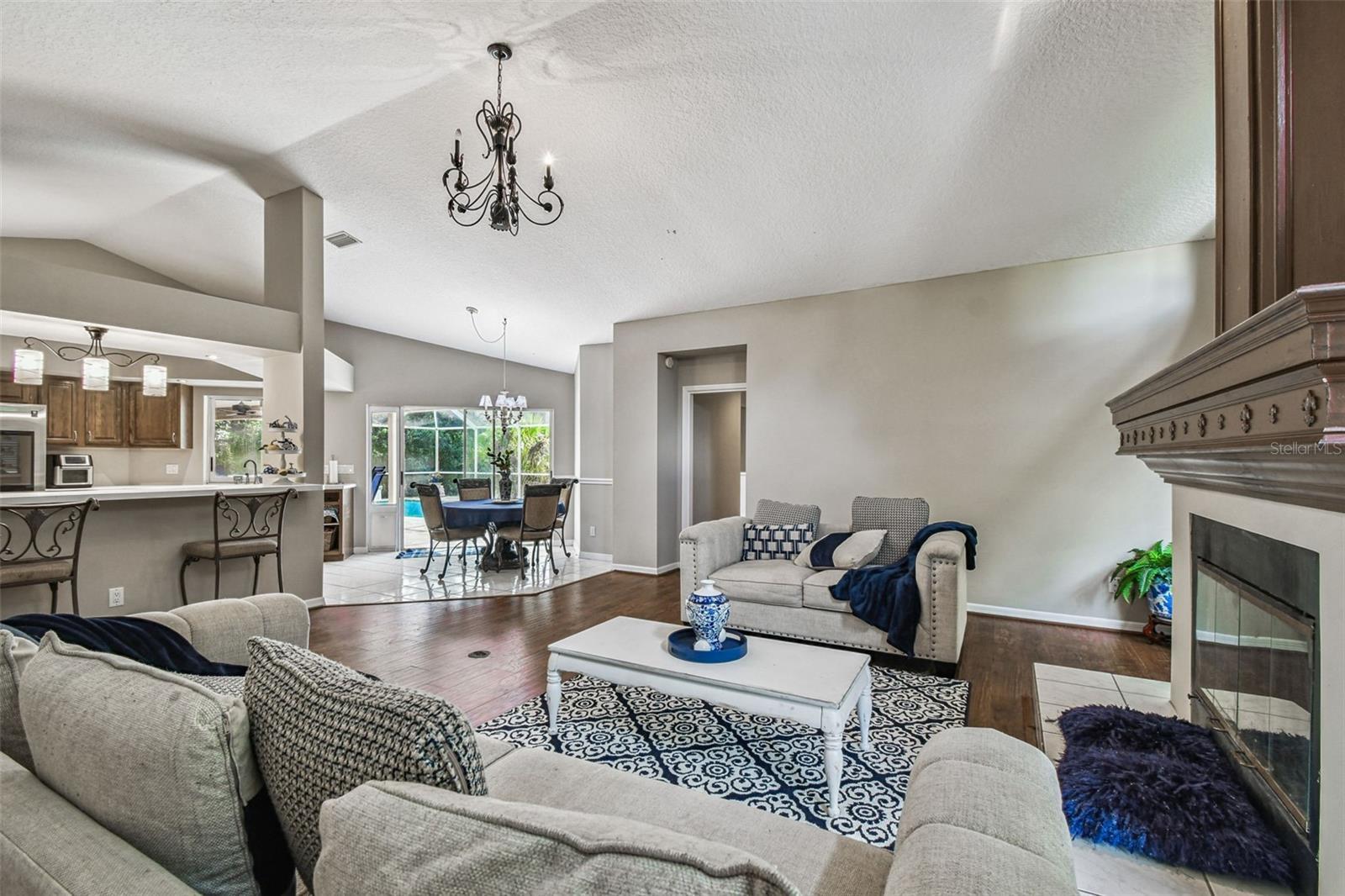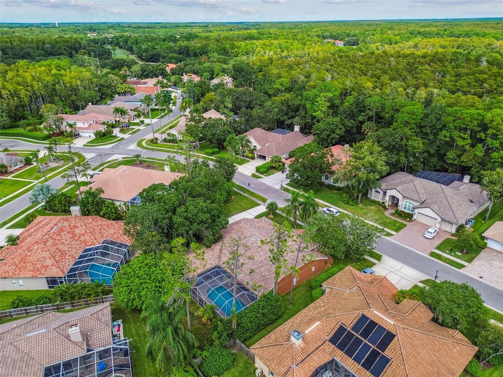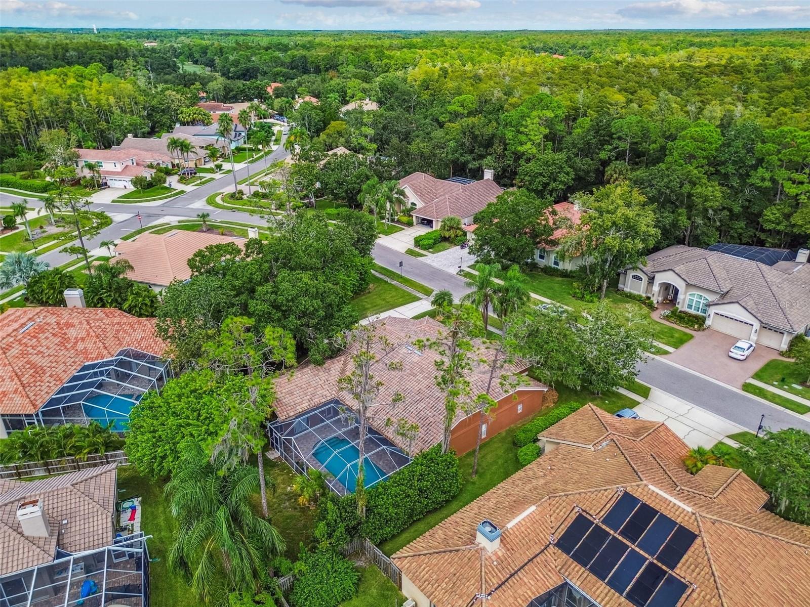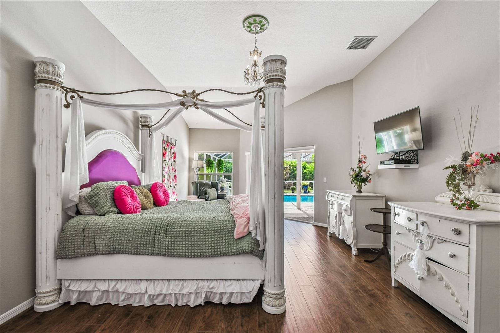 Under contract-accepting backup offers. Stunning 4BR/2.5BA pool home on an oversized lot in the gated East Lake Woodlands – Aberdeen community. This airy single-story residence offers over 2,800 sq ft with soaring ceilings, open floorplan, and abundant natural light. The spacious primary suite features private access to the patio, and in the bathroom you will find a walk-in closet, dual vanities, beautiful clawfoot tub, and separate shower. The home also boasts formal living and dining areas, a family room with fireplace, and a bright open kitchen. A large laundry room/wash room combo with exterior access and 3-car garage provide added convenience. Outdoors, relax or entertain with a screen-enclosed pool, covered patio, and mature landscaped yard. Enjoy community amenities including golf, tennis, fitness center, pool, and sidewalks—all ideally located near shopping, dining, top schools, and the Gulf beaches.