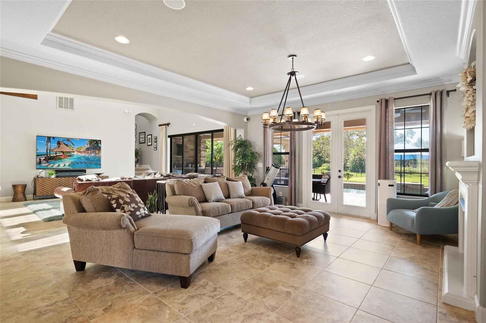 Under contract-accepting backup offers. Welcome to Ladera Estates, one of Lutz’s premier gated communities, where privacy, elegance, and lakefront living converge. This executive estate spans 5,564 square feet of refined living space and offers an unmatched blend of craftsmanship, functionality, and modern upgrades, designed for those who appreciate luxury with purpose. A stately tile roof and pavered drive framed by manicured landscaping lead to a charming front courtyard, setting the tone for the home’s timeless sophistication. Within the courtyard is a private in-law suite with a full bath and its own entrance, ideal for extended family or long-term guests. Enter the front door to soaring ceilings, architectural details, and walls of glass that create a bright, open flow perfect for entertaining or quiet retreat. This five-bedroom, six-bathroom residence features a newly renovated chef’s kitchen that anchors the heart of the home, with professional-grade appliances, quartz surfaces, custom cabinetry, and an oversized island and bar top built for gatherings. Beyond, the expansive great room transitions seamlessly to the formal dining room, a sitting room with fireplace, and a dedicated theater room offering the perfect space for movie nights or entertaining guests. Step outside to your own private resort and enjoy the sprawling pool, grilling pavilion, and outdoor kitchen overlooking the tranquil waters of Lake Merry Water. The expansive backyard provides room to relax or entertain while taking in peaceful lake views. Whether hosting a sunset dinner or enjoying a quiet morning coffee by the lake, this setting delivers the Florida lifestyle at its finest. Practical features elevate everyday living, including a whole-house on-demand generator, newer mechanical systems, and a three-car garage with abundant storage. Located in a private, gated setting yet only a short drive to Tampa, this home offers the perfect balance of seclusion and convenience. Every detail, from the stone finishes to the integrated sound system, reflects thoughtful design and enduring quality.