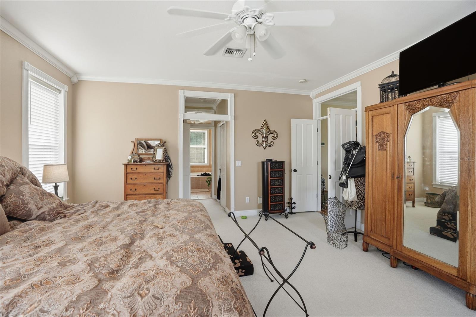 - High Ceilings, PrimaryBedroom Upstairs, Solid Surface Counters, Solid Wood Cabinets, Thermostat, Walk-In Closet(s)