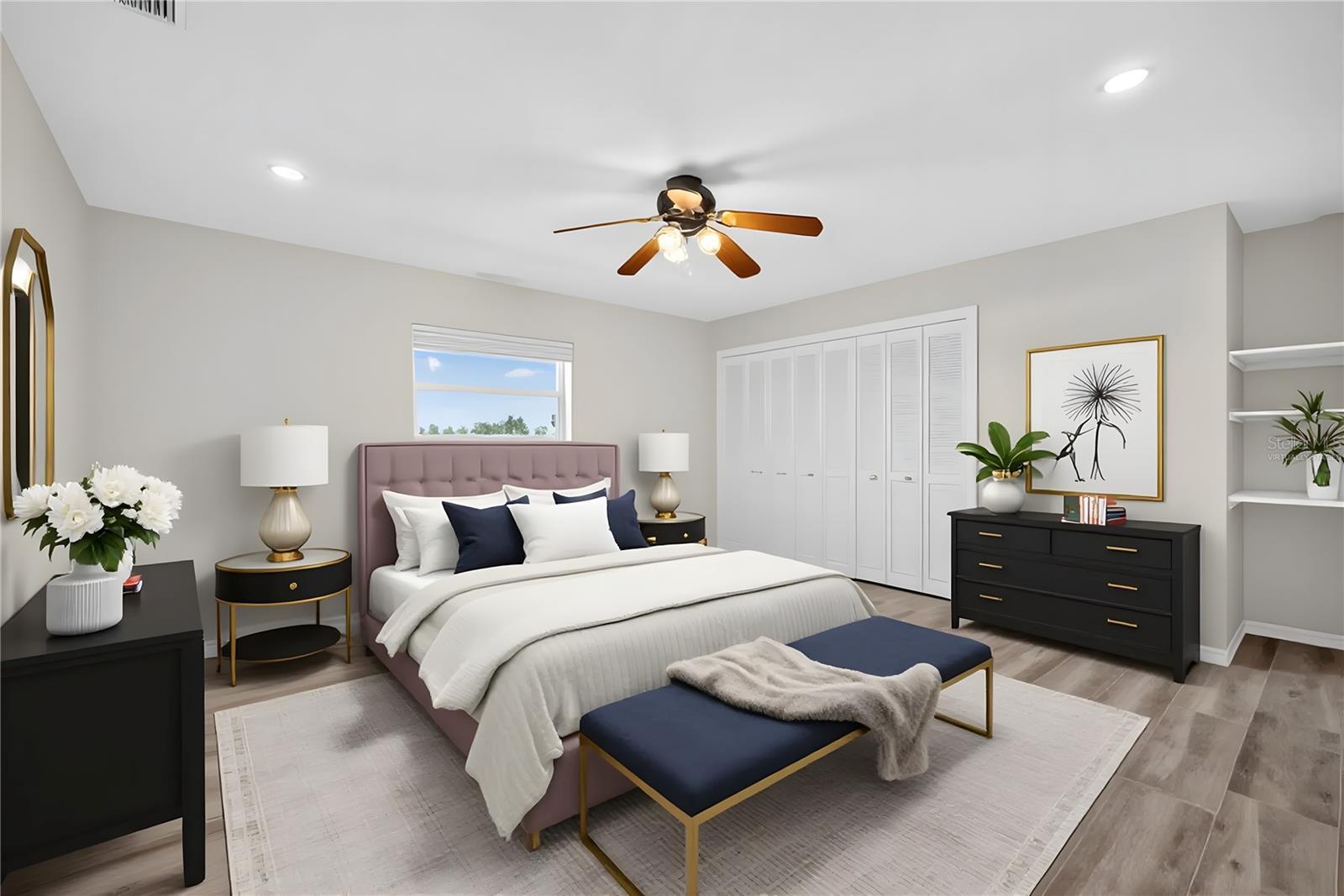 - Ceiling Fans(s), Eat-in Kitchen, Kitchen/Family Room Combo, Open Floorplan, PrimaryBedroom Upstairs, Solid Wood Cabinets, Stone Counters, Thermostat, Walk-In Closet(s)