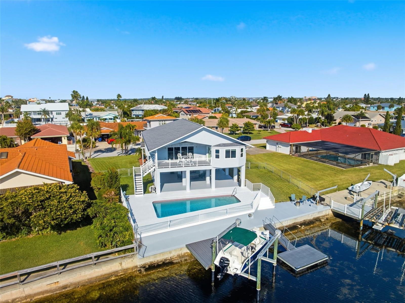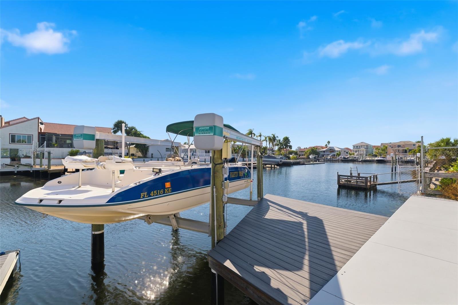 Discover coastal living at its finest in this beautifully updated 3 bedroom, 2 bath stilt, home with pool located on one of the best Deep-Water canals in Gulf Harbors just 5 minutes to the Open Gulf.......... Elevated for peace of mind, this home offers exceptional protection from water intrusion while delivering stunning water views and luxurious outdoor living. Enjoy a two-story rear deck with amazing sunset views overlooking the Water, Canal, and Pool. The expansive covered outdoor lounge features a TV and kitchen—perfect for entertaining year-round. Boaters will love the 10,000 lb boat lift, Deep Water Gulf Access, and being just 5 minutes to the Open Gulf. Inside, the home features an open-concept layout, a cozy fireplace, extra full bath in the garage, It may be possible to fit more than 3 cars in the garage. impact-rated windows (2020), and a long list of major updates for effortless living. Gulf Harbors residents also enjoy access to a Private Beach, community park, and the true Florida waterfront lifestyle. Gulf Harbors is known for it's boat parades, golf cart parades, concerts at the beach and Civic Center and so much more fun Social Activities that Gulf Harbors provides....... Major Upgrades Include: • Plumbing updated (2019) • New roof (2020) • Air conditioner (2020) • New front & back maintenance-free decks (2020) • Flood vents for improved insurance rates (2020) • Exterior paint (2020) • Spray-foam patio insulation & finished patio ceiling (2021) • New boat lift (2021) • Pool converted to saltwater (2020) • New impact hurricane windows & sliders (2020) • Sea wall updated (2019) • Added attic insulation (2022) • Updated fireplace (2022) • New floating dock (2021) • Garage ceiling sheetrock (2022) • New flooring (2022) • Popcorn ceiling removed (2022) • Walls & ceilings repaired, retextured, and new interior paint (2022) • Extended driveway + 30-amp service (2021) • Water heater (2020) This home is the perfect blend of waterfront luxury, peace of mind, and modern upgrades—all in one of the most desirable boating communities on the Gulf Coast. AWESOME AFORDABILITY......My seller only pays $653/yr for Flood Insurance NFIP Policy that is TRANSFERABLE TO THE NEW BUYER and Only $2558 / yr for Home Owners Insurance. There is a VA assumable loan at 2.75% that could be assumable with a large down payment. Ask listing agent for details....