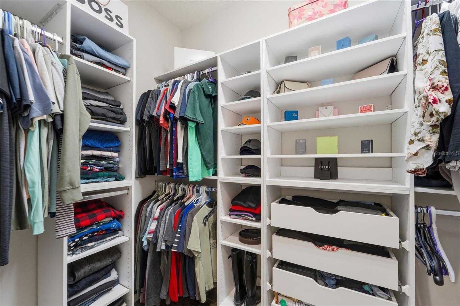 - Built-in Features, Ceiling Fans(s), Crown Molding, Eat-in Kitchen, High Ceilings, Kitchen/Family Room Combo, Living Room/Dining Room Combo, Open Floorplan, Primary Bedroom Main Floor, Stone Counters, Thermostat, Tray Ceiling(s), Walk-In Closet(s)