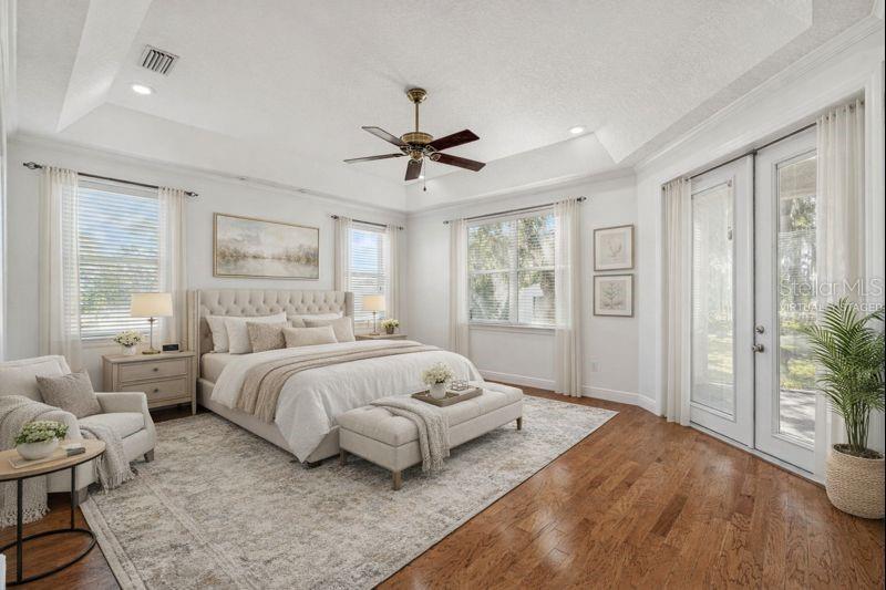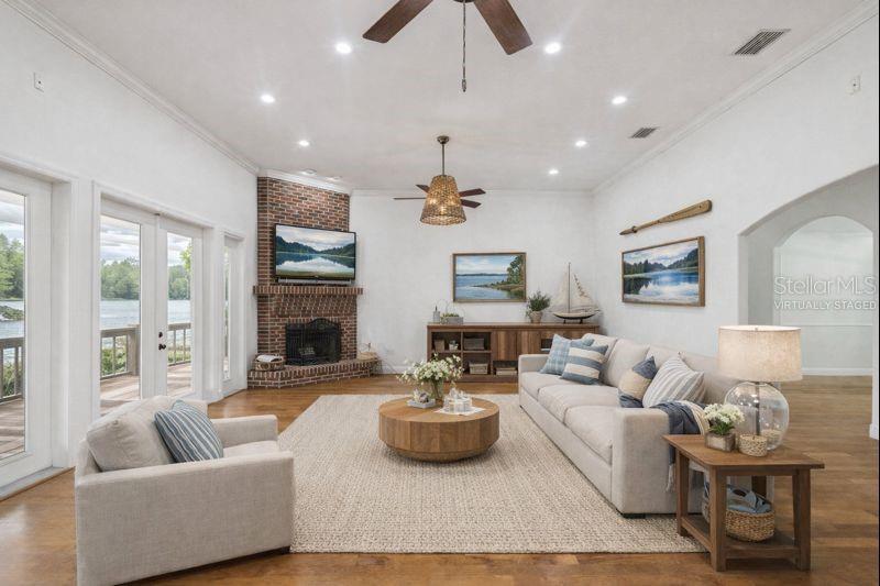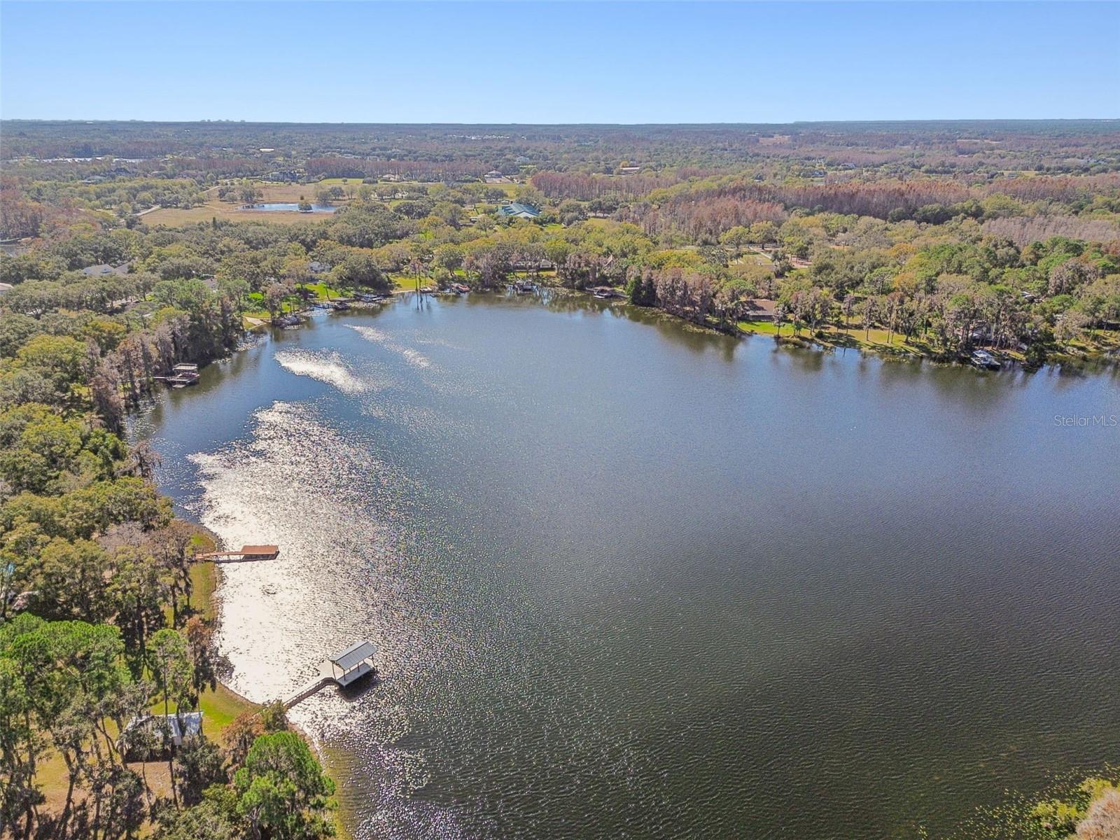 Welcome to THE NEST!!! A single-story lakefront estate set on 2.76 acres on Lake Taylor, where you can boat, ski, and fish to your heart’s content. Tucked away at the end of a quiet cul-de-sac, majestic Old Florida oak trees create a peaceful and welcoming setting. A red brick–accented circular driveway, manicured lawn, and full irrigation deliver exceptional curb appeal. Custom built in 2002, this thoughtfully designed ranch-style home offers 3,367 square feet with 4 bedrooms, 2.5 baths, and an oversized 3-car side-entry garage, showcasing pride of ownership throughout. Recent upgrades include a NEW roof (November 2024), freshly painted interior, and a new composite dock deck (2023). Additional improvements feature a 20’ x 30’ powered garage shed, termite protection, and a water softener and iron filtration system. Inside, double front doors reveal maple hardwood floors, formal living and dining rooms, and an expansive family room with 12-foot ceilings, brick wood-burning fireplace, and French doors framing stunning lake views. The kitchen blends warmth and function with cherry wood cabinetry, granite countertops, newer appliances, breakfast bar seating, and a café-style dining area overlooking the water. The private primary suite offers serene lake views, dual vanities, a walk-in shower, and his-and-hers closets, while the split-bedroom layout provides excellent privacy for guests or family. Outdoor living is the true showstopper!!! A screened porch, sprawling backyard, and a boardwalk leading to a composite dock on 44-acre, spring-fed Lake Taylor, ideal for boating, waterskiing, wakeboarding, and fishing. Zoned for top-rated schools including Steinbrenner High School and conveniently located near shopping, dining, and Tampa International Airport, THE NEST delivers privacy, space, and the ultimate Old Florida lakefront lifestyle. (Roof 2024), (A/C 2013).