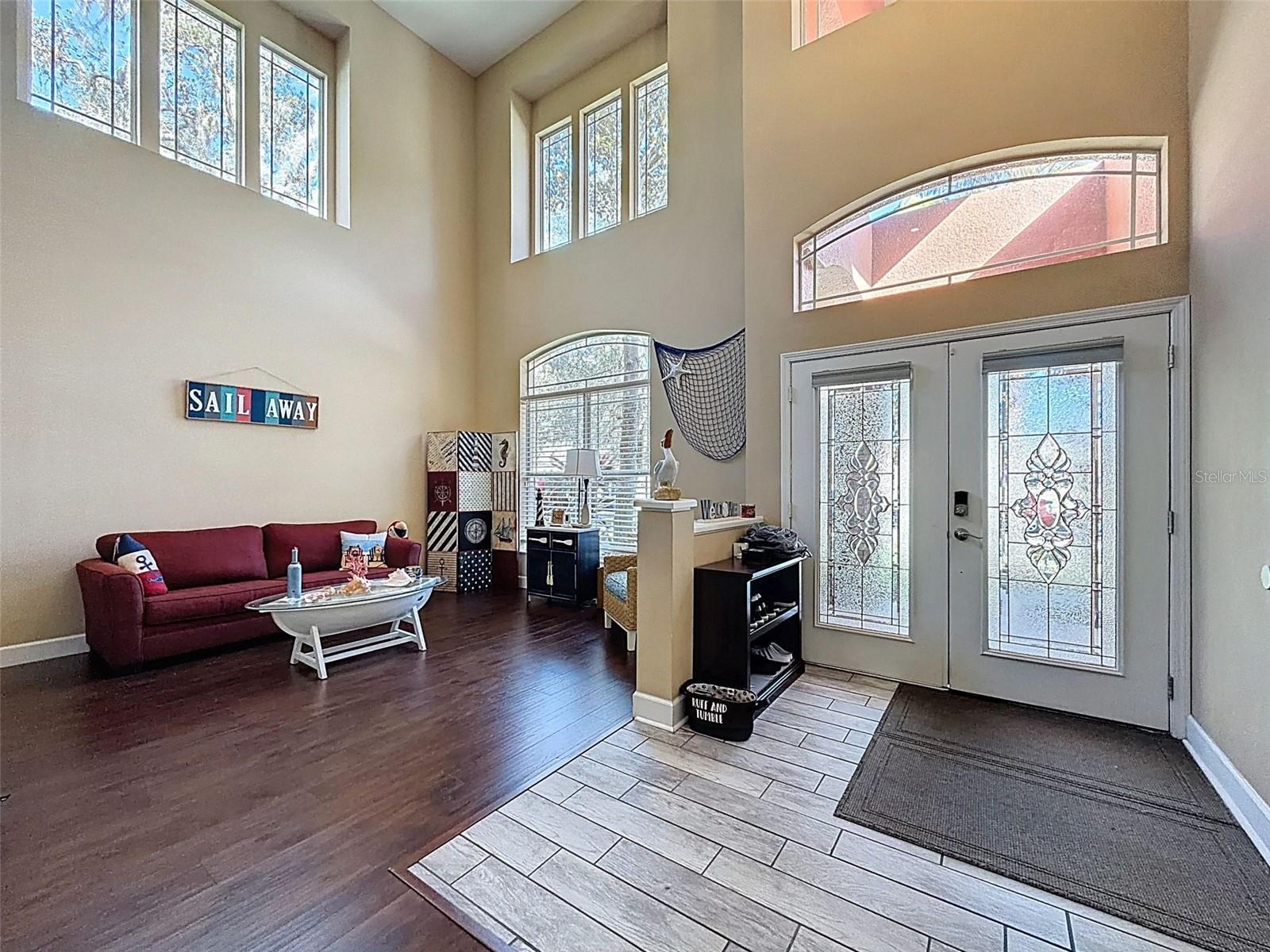 One or more photo(s) has been virtually staged. WELCOME TO YOUR SPACIOUS LAKEFRONT POOL HOME IN THE HIGHLY SOUGHT-AFTER WATERS EDGE COMMUNITY! Situated on an oversized lot, this exceptional residence offers nearly 4,000 square feet of living space and delivers the ultimate Florida lifestyle, complete with private heated pool and spa, and exclusive private boat ramp access for lakefront homeowners. Step inside the grand, light-filled foyer where volume ceilings and an elegant curved staircase create a stunning first impression. The open-concept floor plan seamlessly connects the kitchen, breakfast nook, formal dining room, office, living room, and family room—perfect for both everyday living and entertaining. The remodeled gourmet kitchen is a chef’s dream, featuring stainless steel smart appliances, tile backsplash, premium wood cabinetry, granite countertops, pantry, center island, and breakfast bar. The first-floor primary suite is a private retreat with a sitting area, bay windows, and tray ceiling. The updated en-suite bath offers granite countertops, dual sinks, a garden tub, separate shower, and a spacious walk-in closet. The main level also includes a dedicated laundry room, office, and powder bath. The outdoor oasis, completed in 2021, is the crown jewel of the home. Enjoy year-round entertaining with a saltwater heated pool and spa, outdoor kitchen, and expansive patio—perfect for relaxing or hosting gatherings. Upstairs, you’ll find a loft and all secondary bedrooms, including two connected by a Jack-and-Jill bathroom with dual sinks. The largest upstairs bedroom has been transformed into a private movie theater, complete with in-ceiling speakers and projector. Additional upgrades include dual A/C units (2018), fresh exterior paint (2024), new sod and irrigation system (2021), and built-in theater audio (2021). Take in serene lake views as you stroll down the sidewalk to the clubhouse where your private dock and direct lake access awaits, ideal for fishing, boating, and kayaking. Lakefront owners also enjoy exclusive private boat ramp privileges. Waters Edge offers resort-style amenities, including a clubhouse, fitness center, two pools, basketball court, and two playgrounds. The low HOA fee includes cable, Spectrum high-speed internet, and trash service. This exceptional lakefront home truly offers location, luxury, and lifestyle. SCHEDULE YOUR PRIVATE SHOWING TODAY!! DON'T MISS OUT ON YOUR OPPORTUNITY TO OWN YOUR DREAM HOME!!