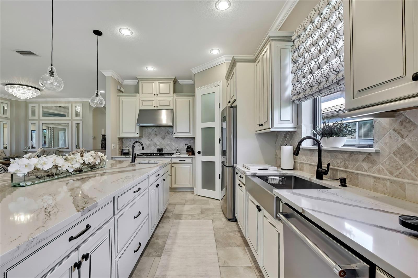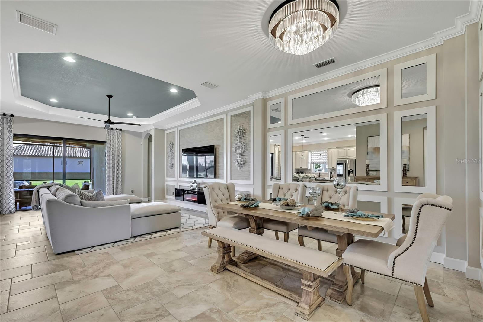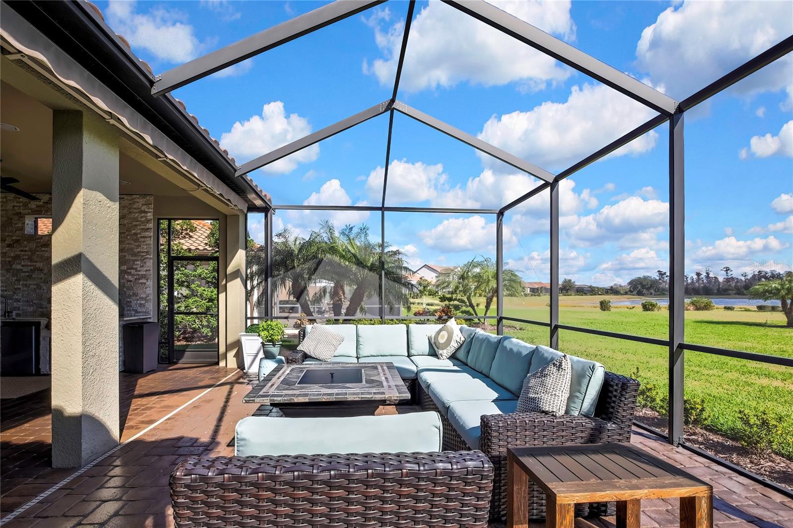 Welcome home to the gated Esplanade at Starkey Ranch. This stunning Taylor Morrison Lazio model offers 2,280 sq ft and is beautifully situated on Huckleberry Pond with serene sunrise views from the large screened lanai. Exceptional curb appeal with lush landscaping and path lighting welcomes you inside to crown molding, decorative carpentry, and an open-concept floor plan ideal for entertaining. The chef’s kitchen features a 10-ft island and opens to the lanai with outdoor kitchen through hurricane-rated sliding glass doors. Upgrades include travertine-look tile, engineered hardwood in bedrooms, plantation shutters, custom drapery, upgraded lighting, and a whole-house generator. Three bedrooms, three baths, plus a den. Maintenance-free community with clubhouse, lifestyle director, fitness center, resort pool, spa, tennis, pickleball, bocce, dog park & more.