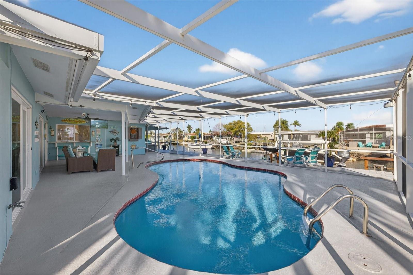 Experience elevated Florida waterfront living in the desirable Gulf Harbors community. This beautifully updated coastal home offers deep-water access with a direct route to the open Gulf—ideal for serious boaters and sunset chasers alike. The home features hurricane-rated windows and doors, providing peace of mind while enhancing energy efficiency and natural light throughout. Inside, light-filled living spaces flow seamlessly into an open kitchen designed for both everyday comfort and entertaining. Special feature is a multi split floor plan with 4 bedrooms and 3 baths with a very spacious open living room. Ideal for entertaining. Large sliding doors open to a screened lanai and resort-style pool overlooking wide canal views, with an expansive outdoor paver patio creating the perfect backdrop for waterfront gatherings or quiet evenings at home. Expansive dockage, separate floating dock (16 x 8) and a 10,000 lb boat lift make enjoying the boating lifestyle effortless. New Hot Water heater (2026), Roof 2018. Additional highlights include a spacious garage, ample storage, and evident pride of ownership. Residents also have the option to join the Gulf Harbors Private Beach Club, just a short golf cart ride away, offering sandy beaches and stunning Gulf sunsets. Downtown New Port Richey’s dining, shopping, and riverfront events are only minutes away. This is a rare opportunity to own a move-in-ready waterfront home that blends luxury, security, and the true Florida lifestyle. Note: The following items DO NOT CONVEY: Hot Tub, flag pole and the frig in the garage. The kitchen refrigerator and washer and dryer that are in the photos will be swapped out with similar items on Feb 6th.
