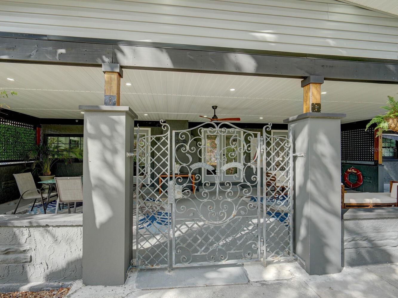 - French Doors, Lighting, Rain Gutters, Sidewalk, Storage