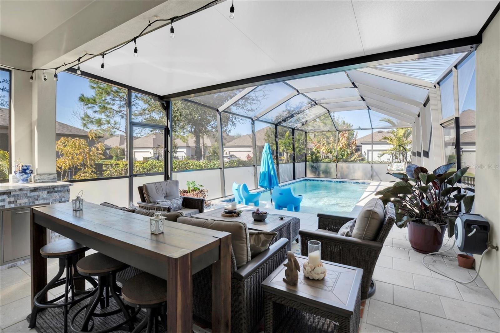 Welcome to this stunning MI Homes Rochester floor plan, offering 3,333 square feet of thoughtfully designed living space in the heart of Starkey Ranch. This 5 bedroom, 3 bathroom pool home seamlessly blends modern elegance with everyday functionality. The gourmet kitchen is the center price of the home, featuring an oversized island, premium finishes, and an open-concept layout perfect for entertaining, especially with the dedicated dining roon. Step outside to your private oasis complete with a resort style pool and newly built outdoor kitchen (never been used), ideal for Florida living year-round. The primary suite is conveniently located on the second floor, providing a peaceful retreat with spacious accommodations. Throughout the home you'll find tray ceiling in the bonus room, custom built-in closets, and thoughtful design details that elevate every space. Tech-forward buyers will appreciate Cat-6 Ethernet connection in every room, in-wall surround wiring in the bonus room, and a camera security system included, offering convenience and peace of mind. Located in one of Tampa Bay's most desirable master-planned communities, this home delivers luxury, comfort, and smart home readiness - all just moments from schools, parks, trails and amenities.