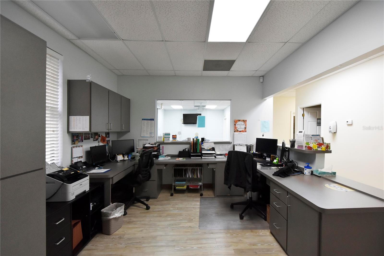 This Class A Medical Office space in Trinity Professional Center at 1812 Health Care Drive in Trinity, Florida, features a spacious layout that includes a large reception/waiting area, built-in cabinets and desks, and six exam rooms equipped with custom built-in desks, cabinets, and hand sinks. The nurses' station is thoughtfully designed with a sink, small refrigerator, and a patient sample pass-through from the bathroom for added convenience. This immaculate property boasts a prime location and offers a professional setting for medical professionals looking to elevate their practice. With a total of three bathrooms, including one in the break room with a utility sink, and a break room complete with a refrigerator, sink, and microwave, this property is designed to cater to the needs of medical professionals and their staff. Additionally, a corner doctor's office with a private rear exit provides a secluded space for consultations and meetings. Built in 2004 and featuring a single-story racetrack layout, this existing office space is perfect for those seeking a turnkey solution for their medical practice. Don't miss this opportunity to occupy a premium medical office space in Trinity's sought-after professional center. Elevate your practice and impress your clients with the Trinity Professional Center Medical Office.